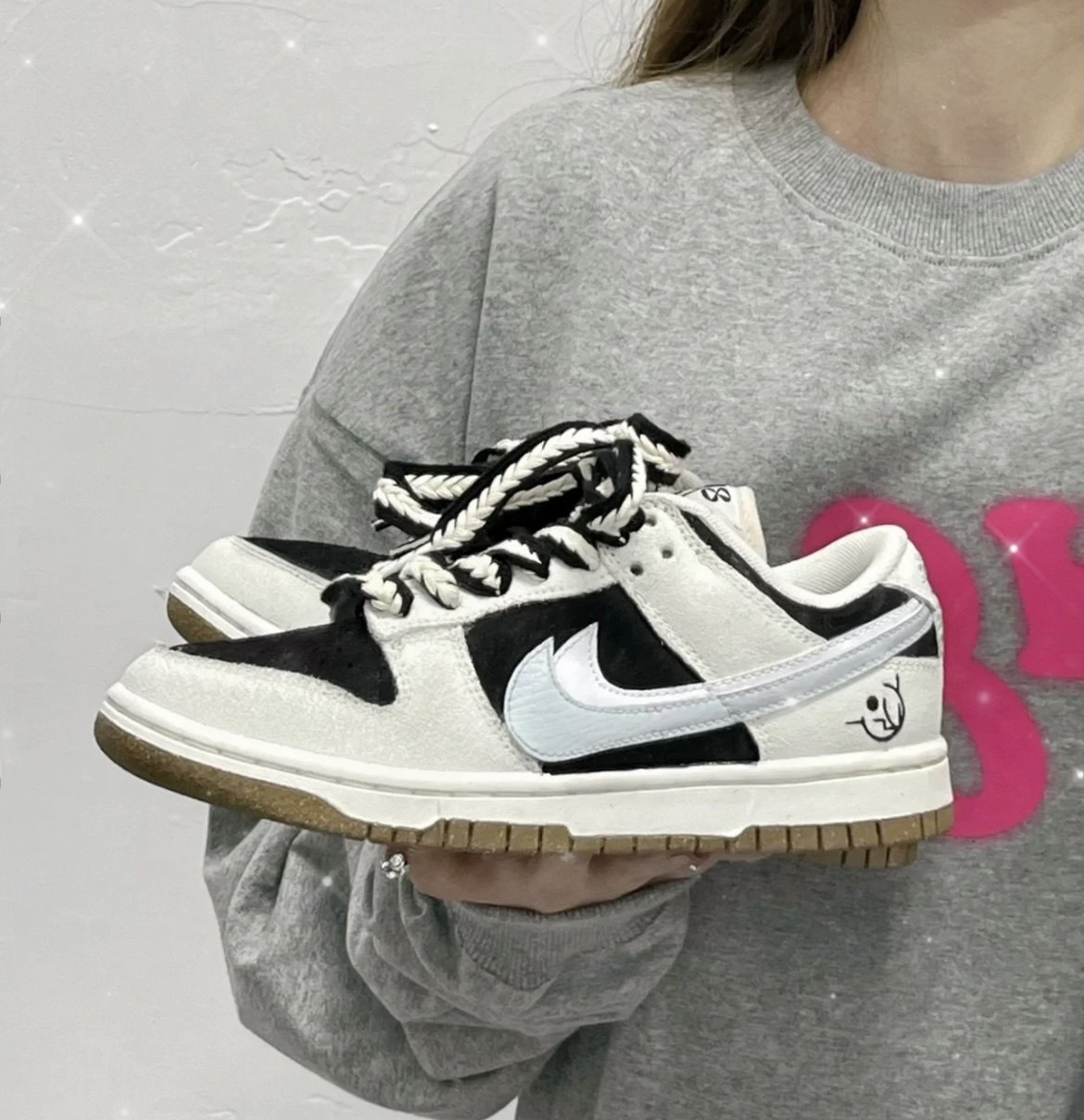 📚 适配Nike Dunk Low双钩黑白熊猫空军一号AF1黑白麦穗棉麻扁形鞋带