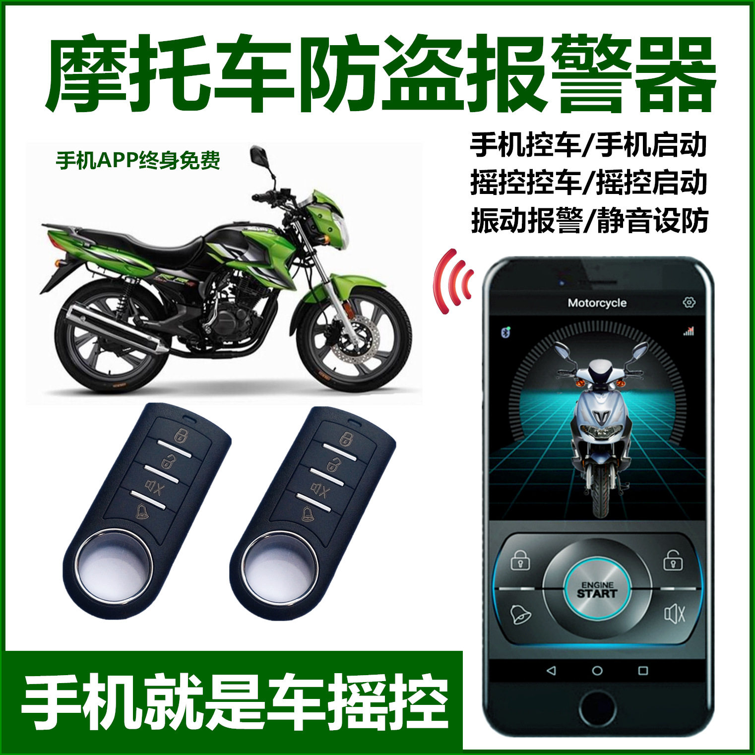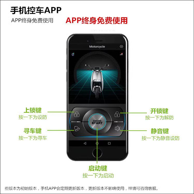 📚 摩托车防盗报警器踏板助理手机遥控一键启动打火锁防剪线12V通用