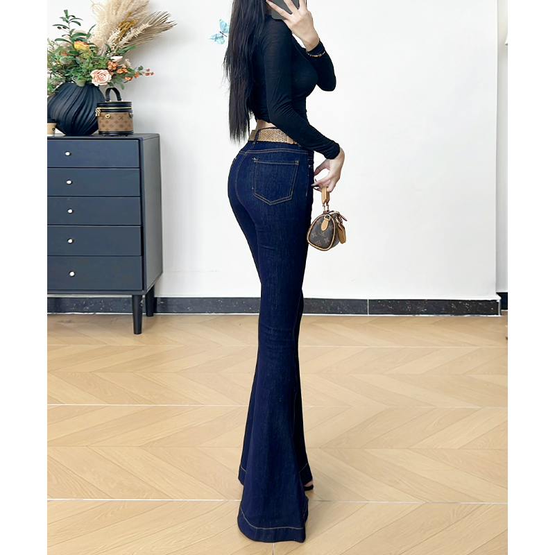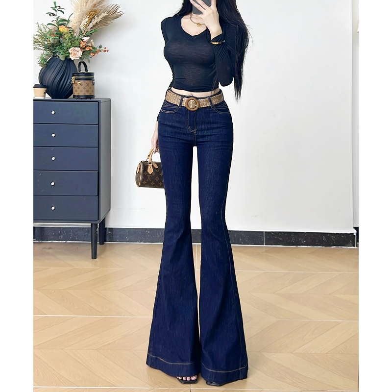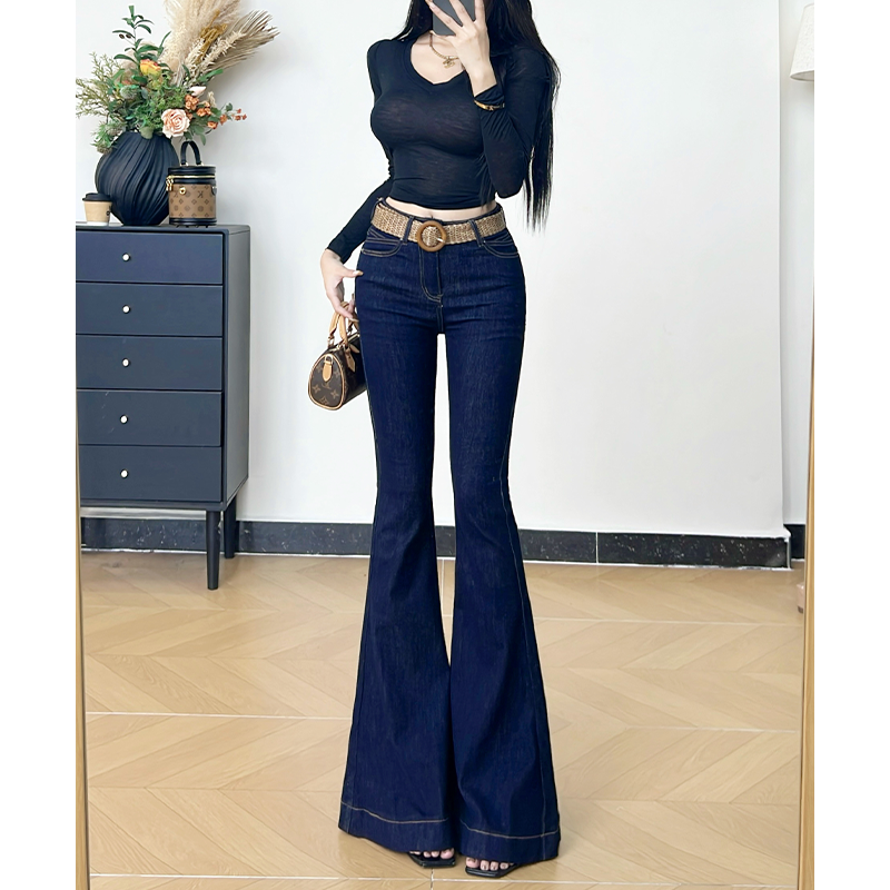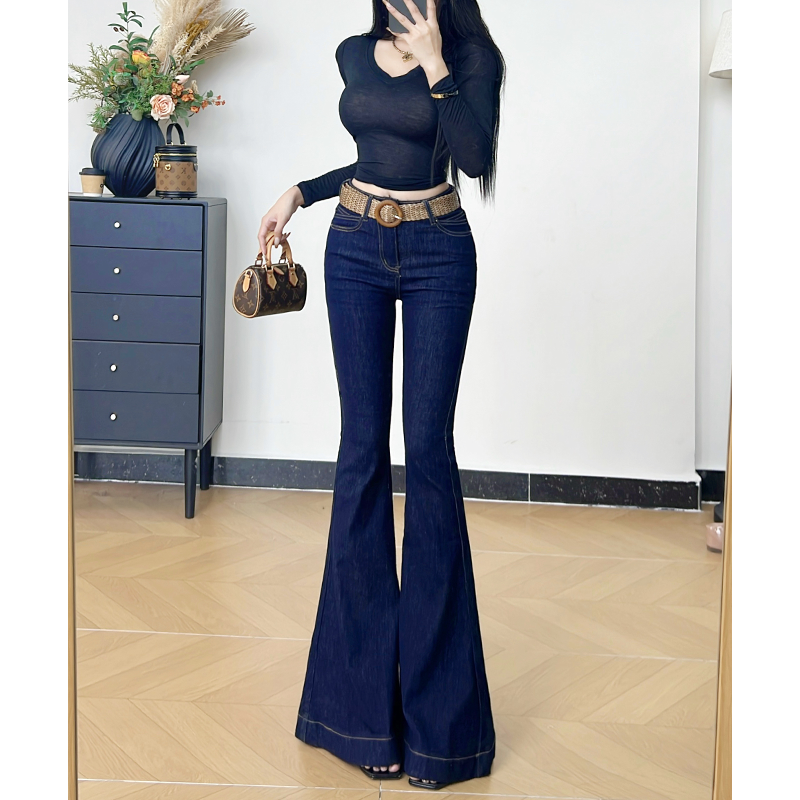 📚 乔栈丹宁蓝气质鱼尾大喇叭牛仔裤女秋冬加绒高腰修身提臀长腿微喇
