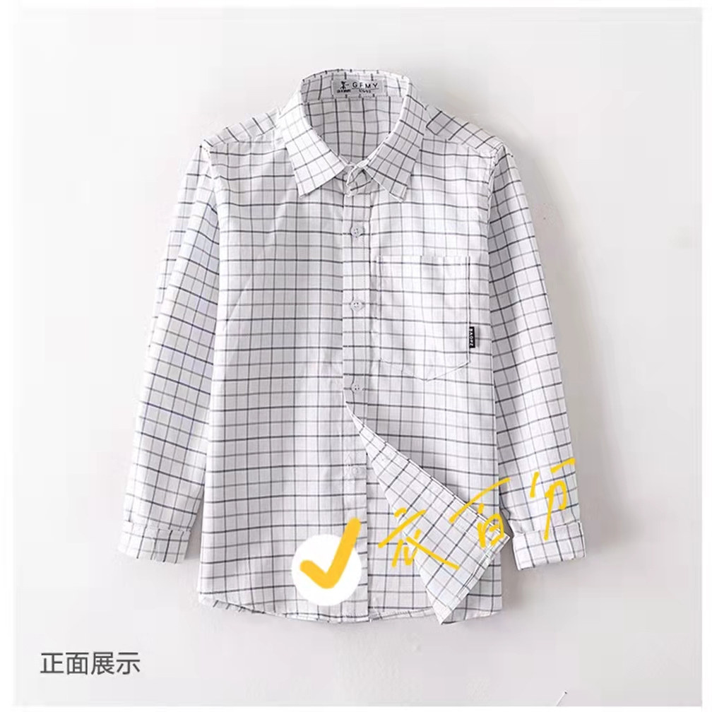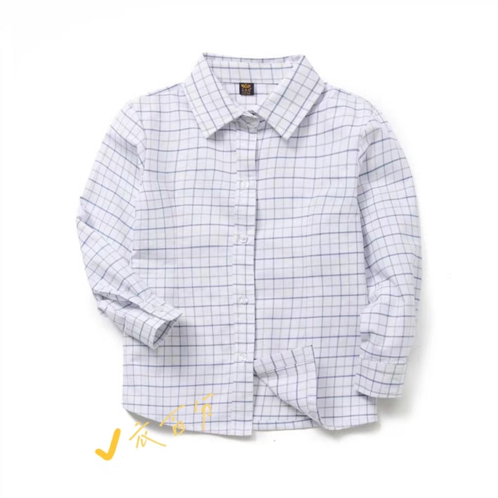 📚 秋季纯棉长袖衫济南历下校服同款小学男女生不缩水不变型方格上衣