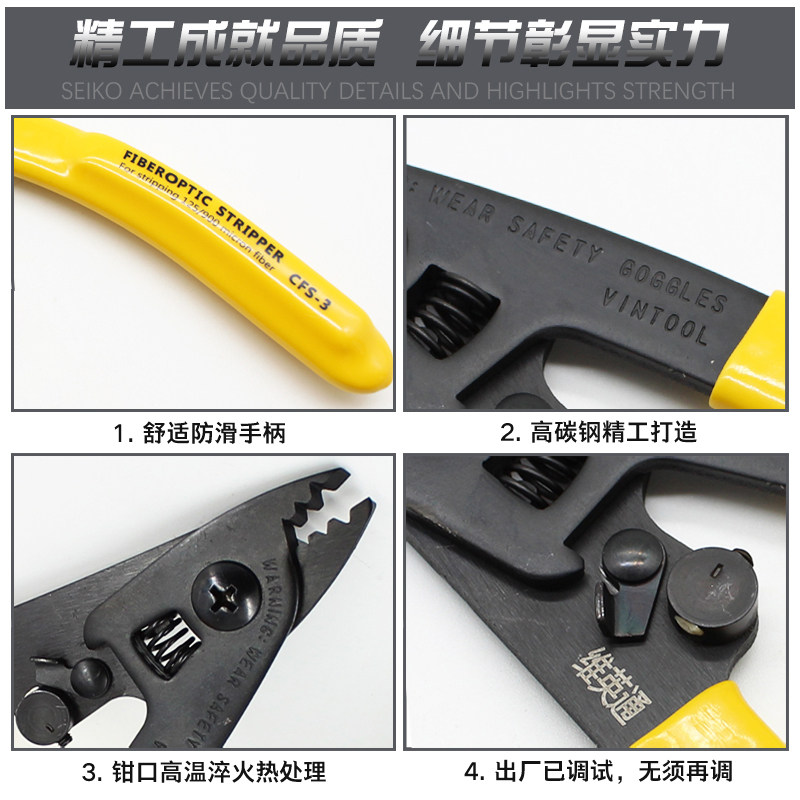 📚 维英通CFS-C3联动擦纤米勒钳三口钳CFS-3米勒钳不锈钢M3-C三口钳光纤剥线钳双口剥纤钳