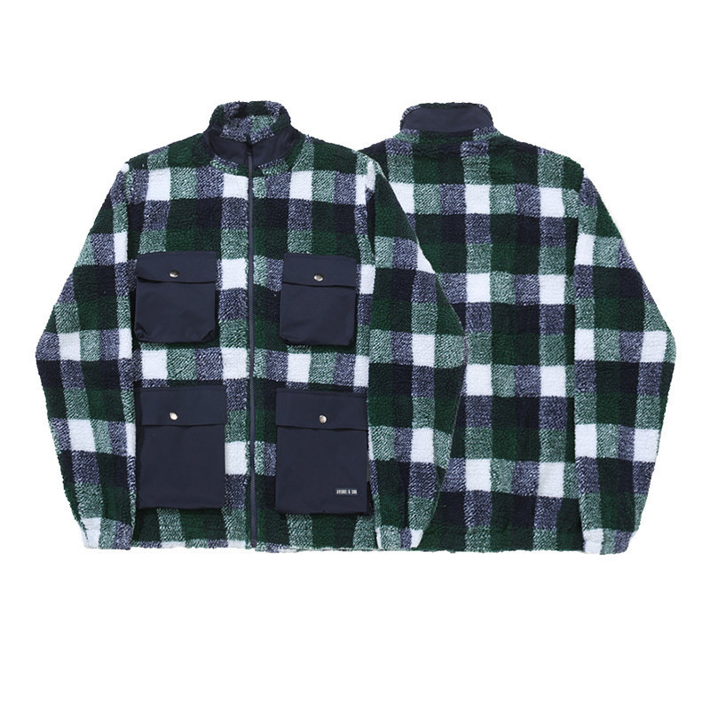 📚 AVENUE & SON GRID LAMBS羊羔绒多口袋秋冬保暖舒适夹克外套