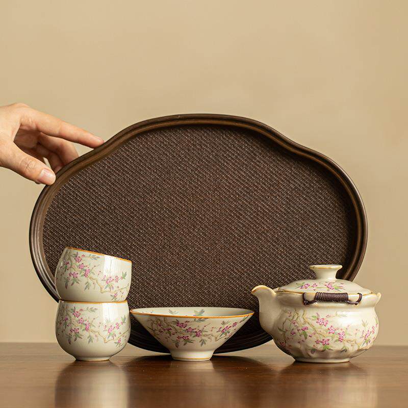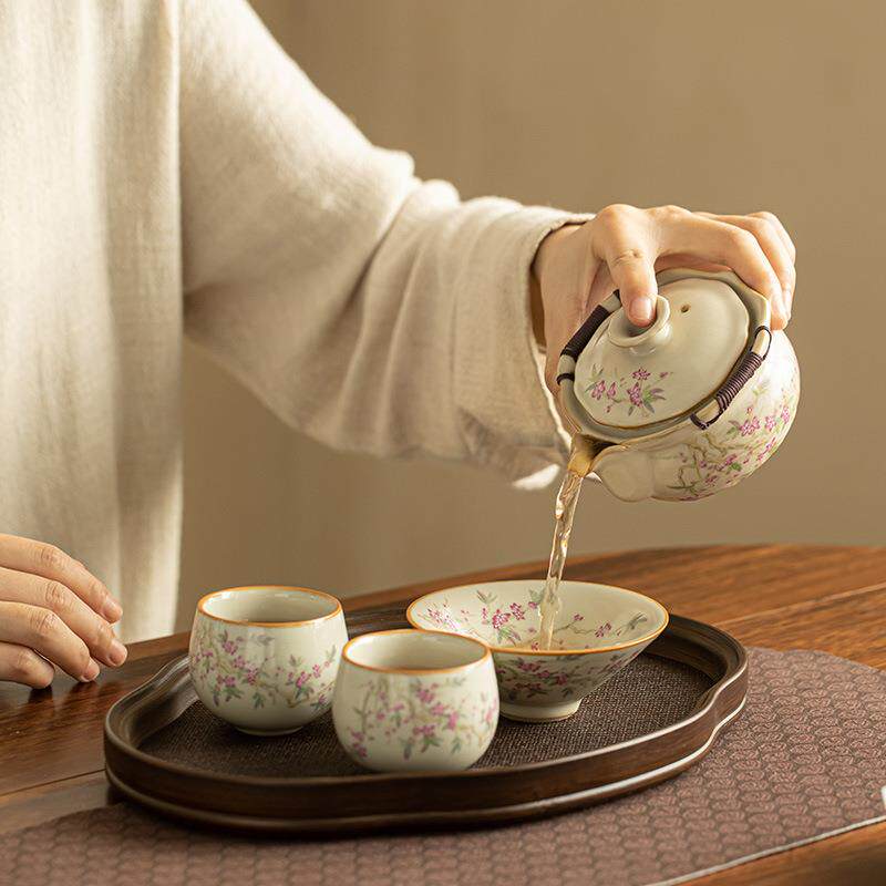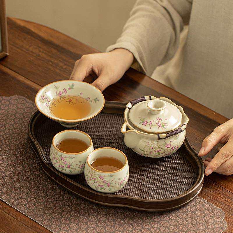 📚 德化茶具汝窑手抓壶茶壶主人杯套装茶杯斗笠杯陶瓷茶盘家用办公装