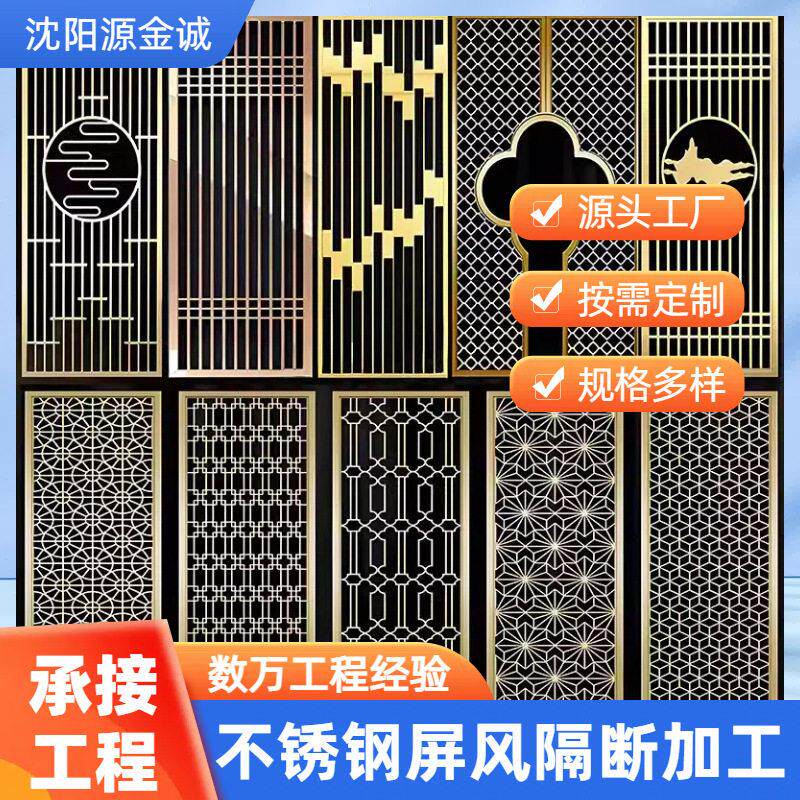 📚 不锈钢屏风餐厅卡座隔断包间铁艺镂空新中式花格栅栏入户定制玄关