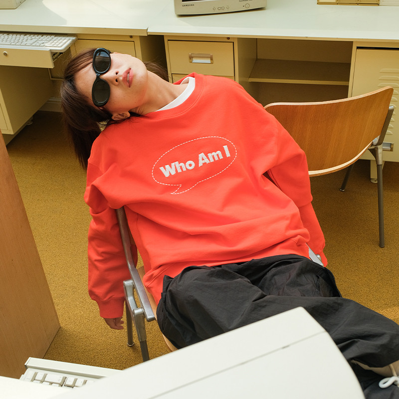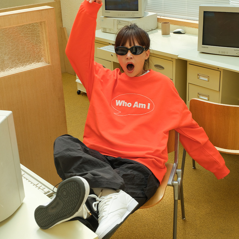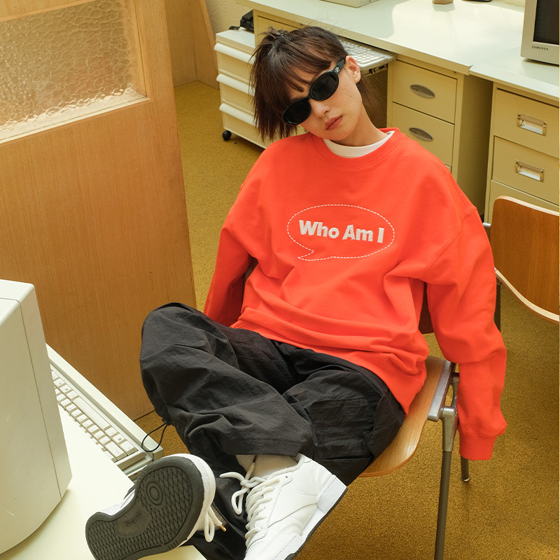 📚 MoodLikeMe 「我是谁」slogan刺绣圆领纯棉印花长袖纯色卫衣