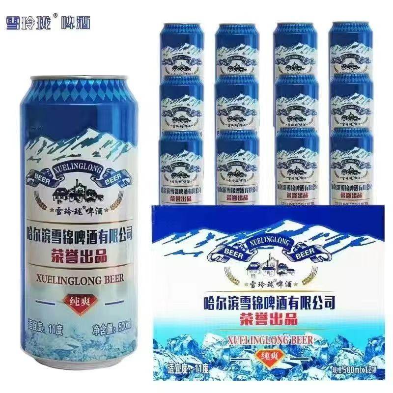 📚 整箱24罐500ml哈尔滨精酿啤酒雪锦啤酒12罐冰爽新鲜啤酒易拉罐装