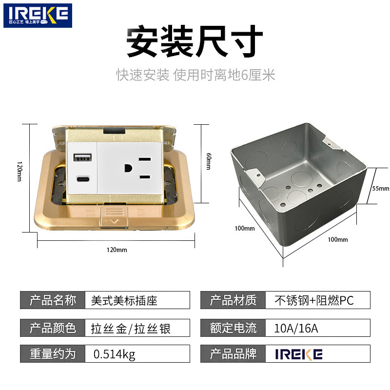 📚 跨境出口美标不锈钢弹起式15A美式插座usb-type美规隐形地插