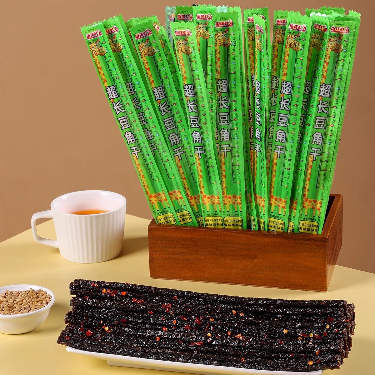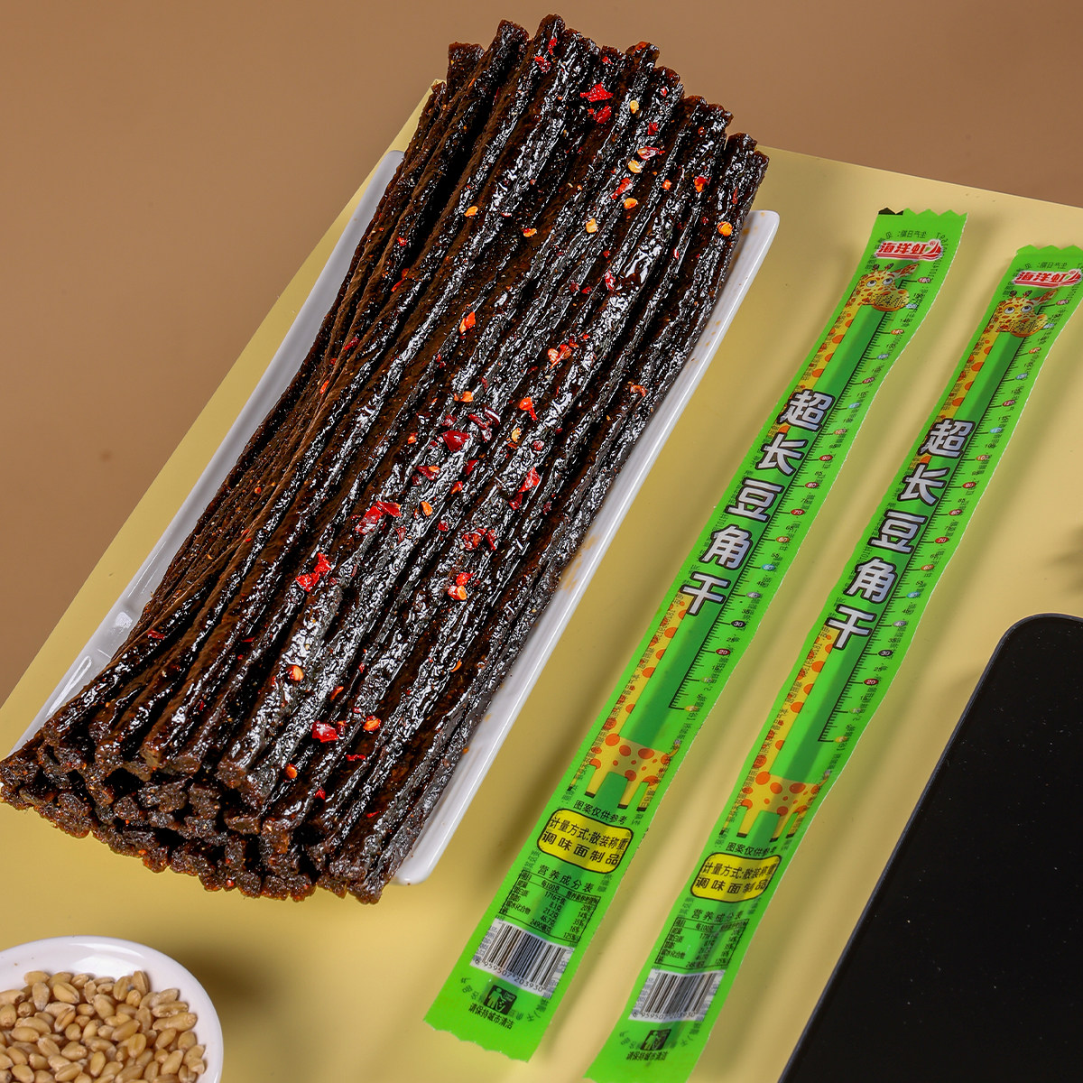 📚 海洋虹超长豆角干辣条麻辣素牛筋一根面筋棒网红解馋怀旧零食小吃