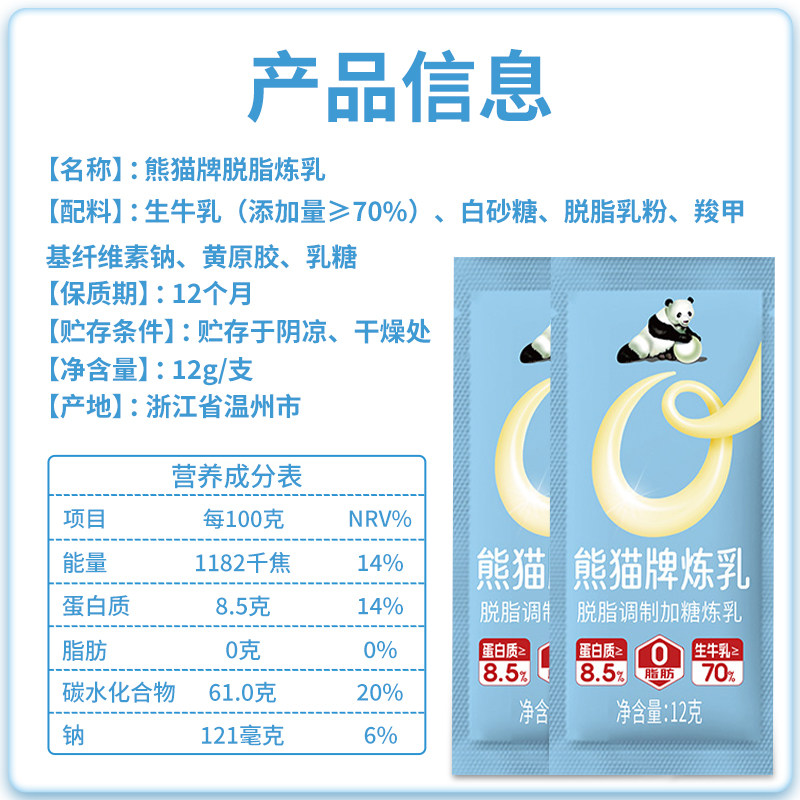 📚 熊猫零脂原味炼乳小包装12g*20支烘焙家用商用熊猫牌调制加糖炼乳