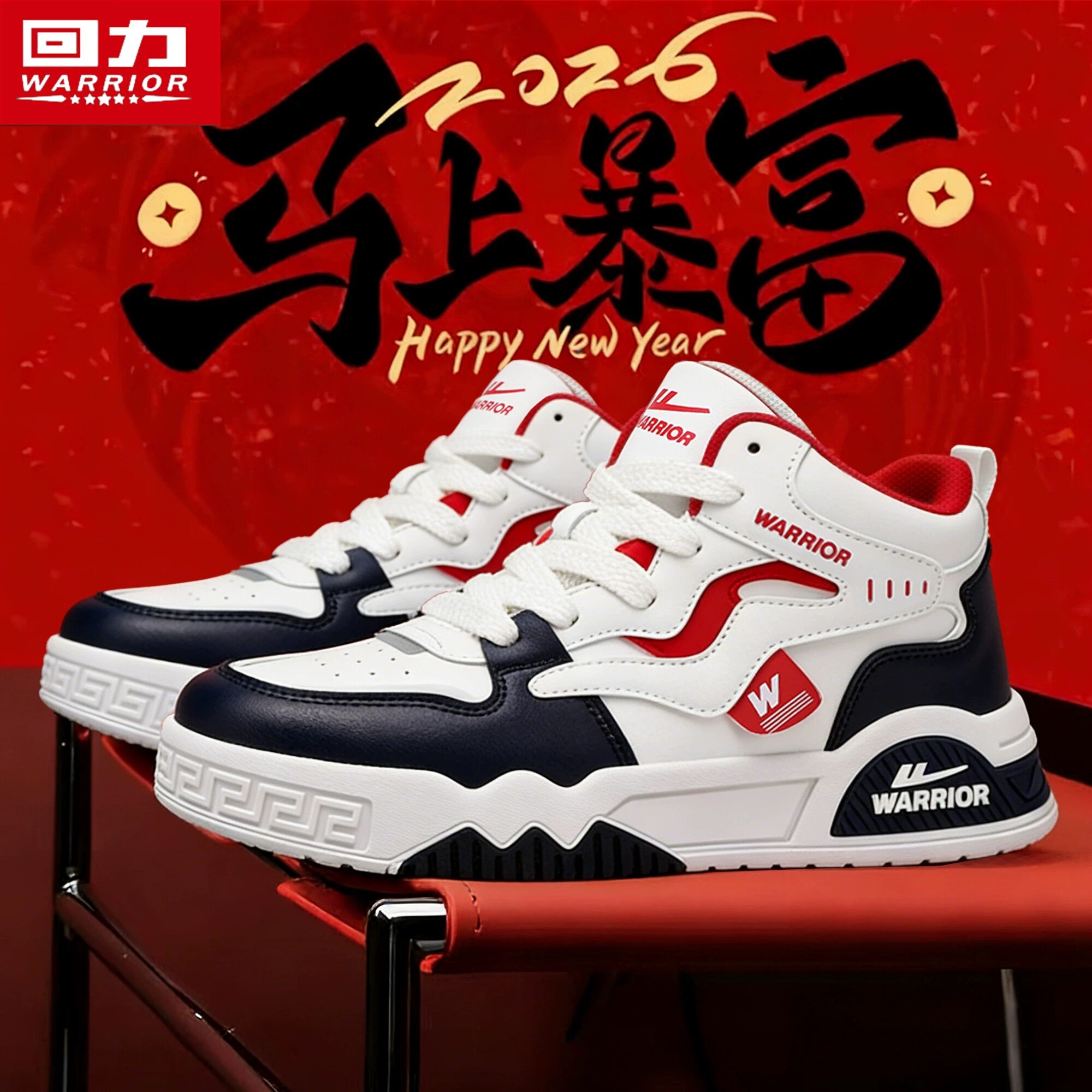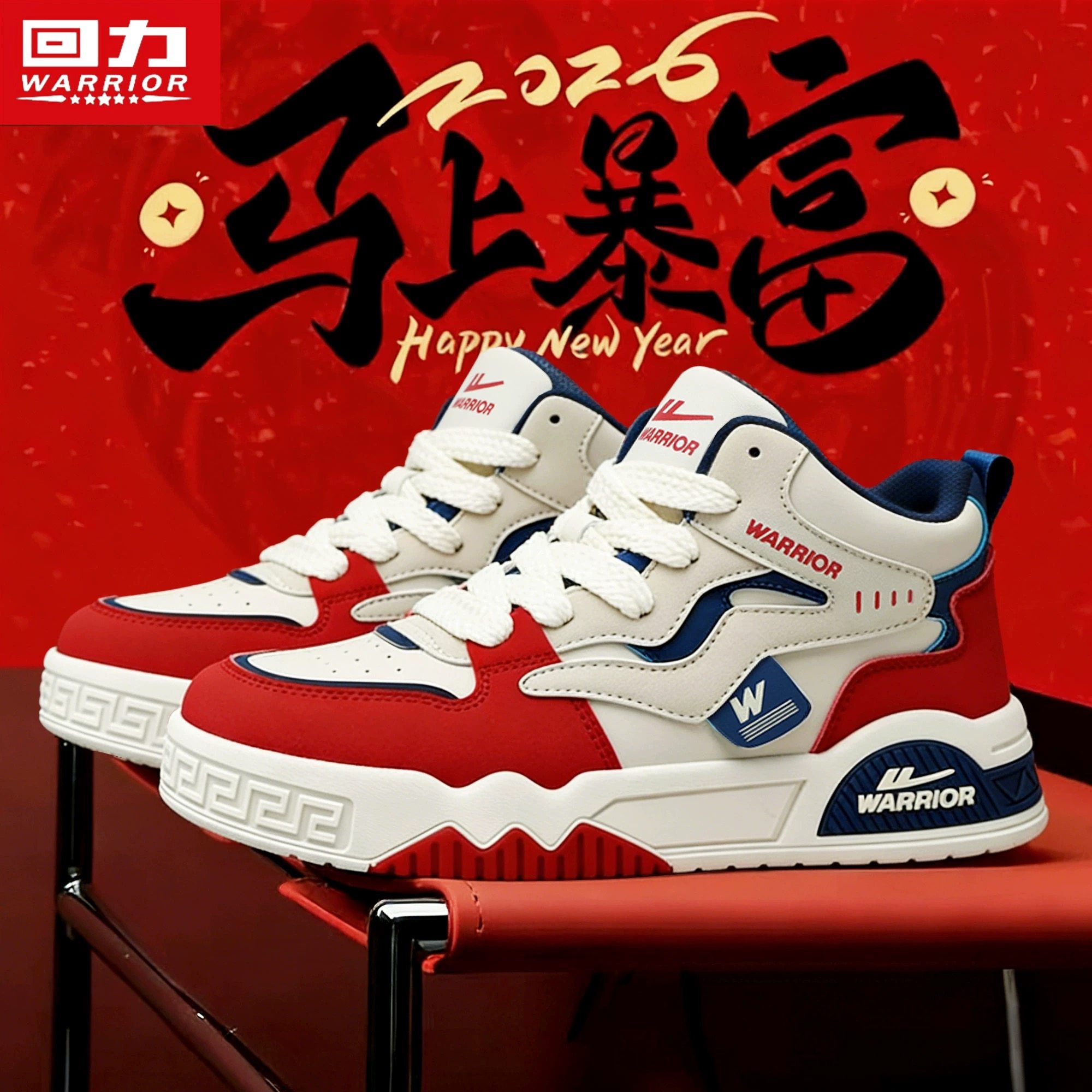📚 回力帆布男鞋春季运动高帮休闲马年限定红色超火厚底大码百搭板鞋