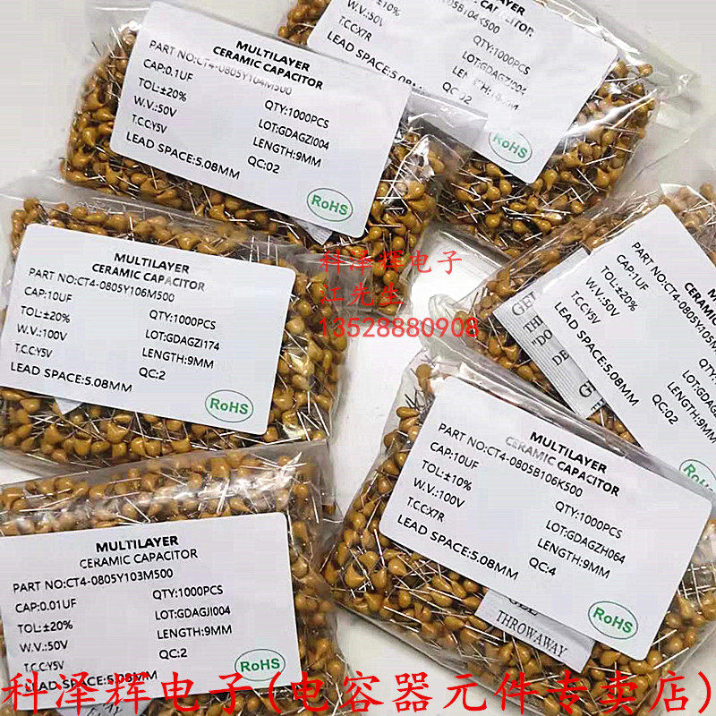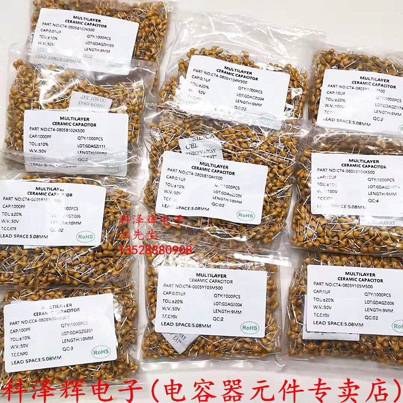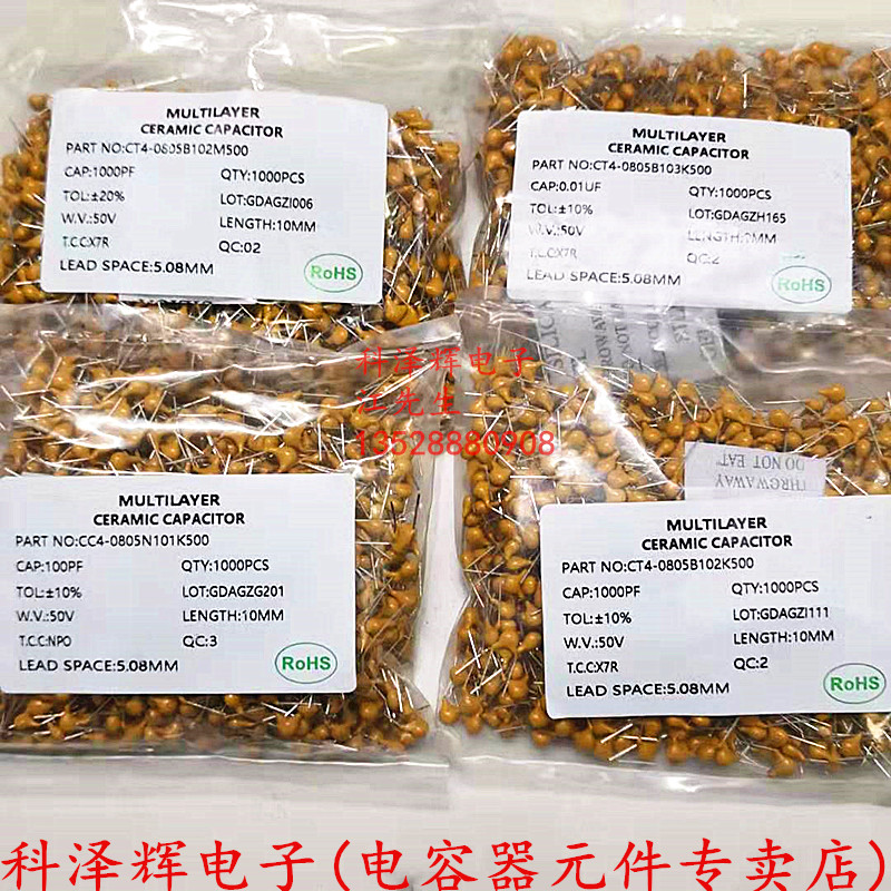 📚 独石电容 101 102 103 104 105 106 50V脚距5.08MM无极性陶瓷直插