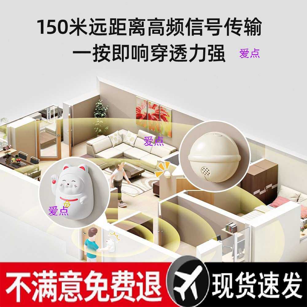 📚 门铃无线家用自发电免插电呼叫器超远距离招财猫装饰可爱入户提醒