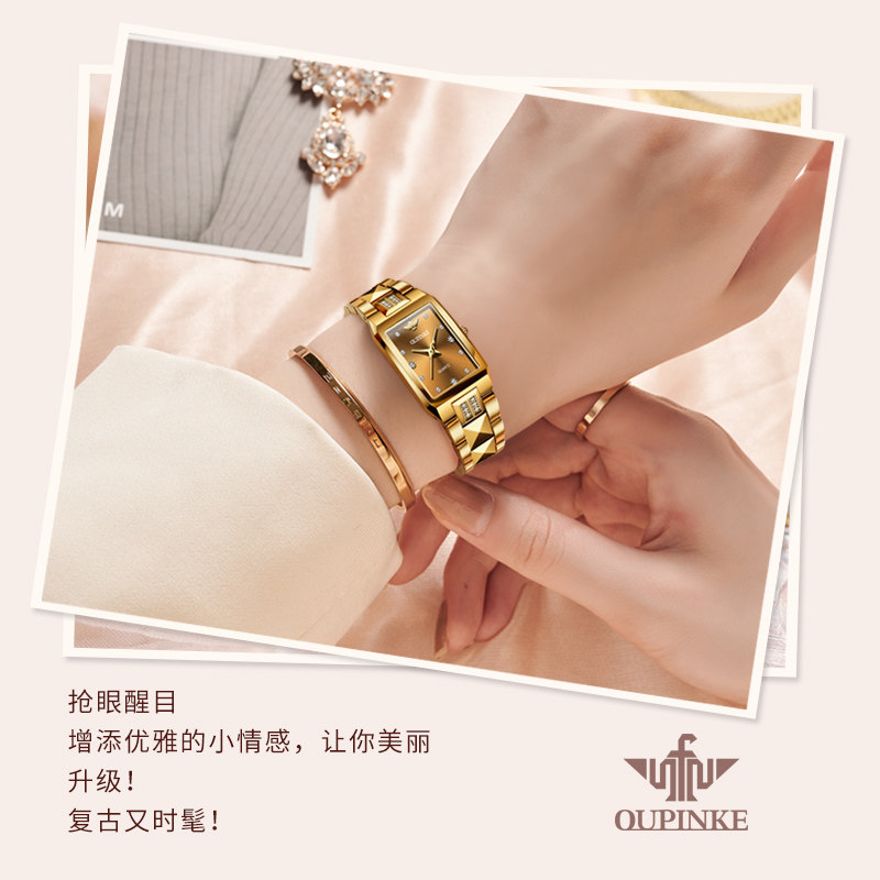 📚 瑞士进口芯正品牌石英方形手表女士小众轻奢钢带女表高档2026新款