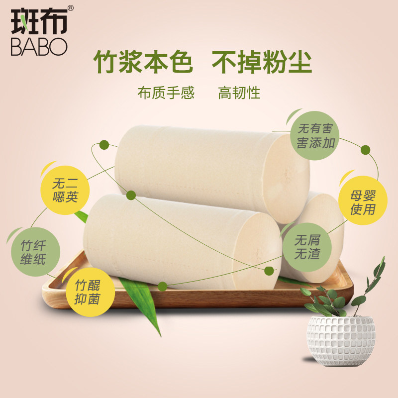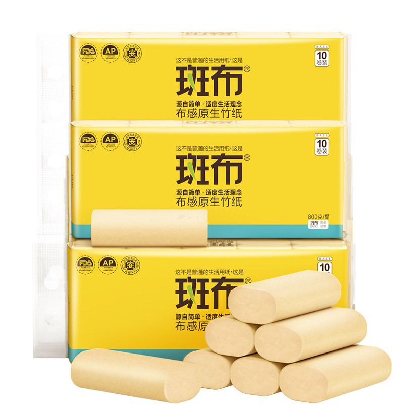 📚 斑布卷纸实心长卷筒纸班布竹浆本色卫生纸家用整箱 80克30卷3提