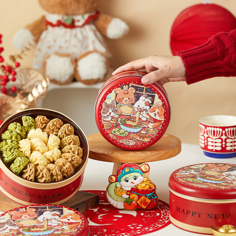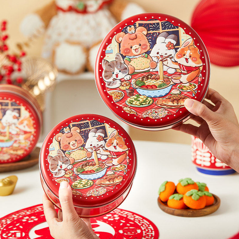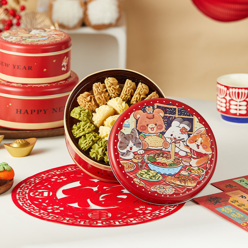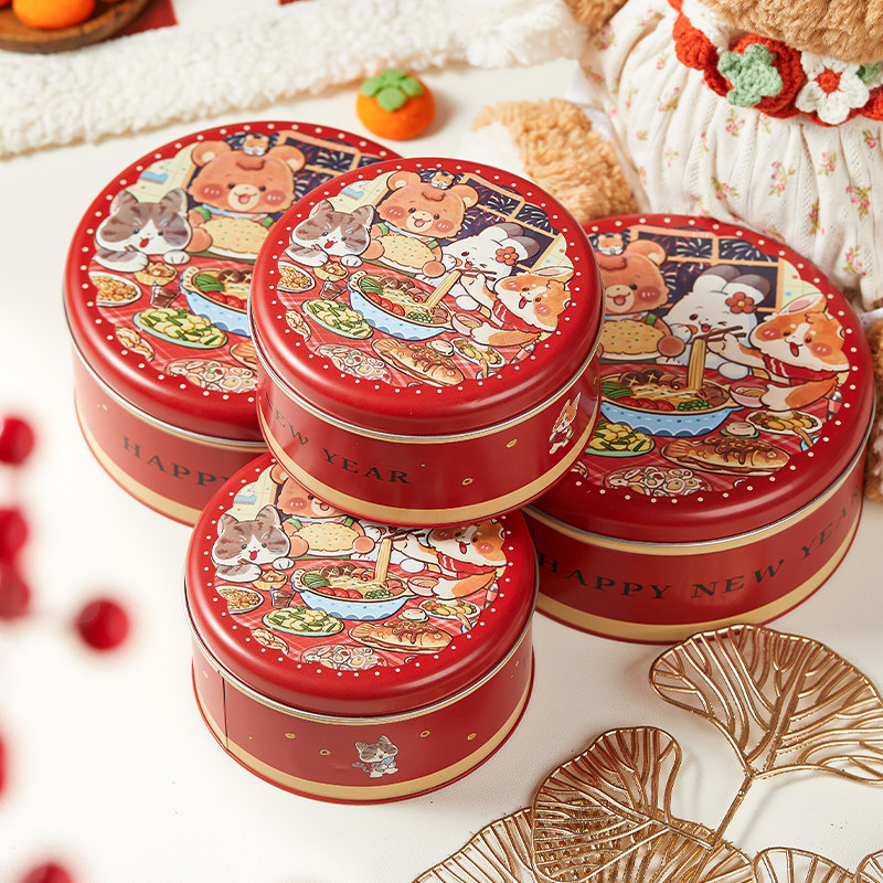 📚 新年礼盒空盒铁盒饼干包装零食伴手礼物品糖果子马圆形2026马口铁