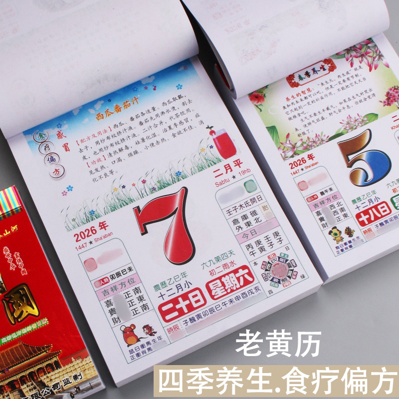 📚 日历2026年新款手撕彩色养生老黄历挂墙式家用挂历大号皇历每日一撕老式特大号万年历老通胜运程马年挂历日历