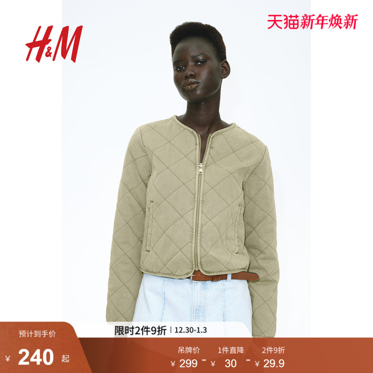 📣【开箱晒物】HM女装短外套冬季时尚休闲长袖棉质绗缝拉链夹克,券后价只需299!👕