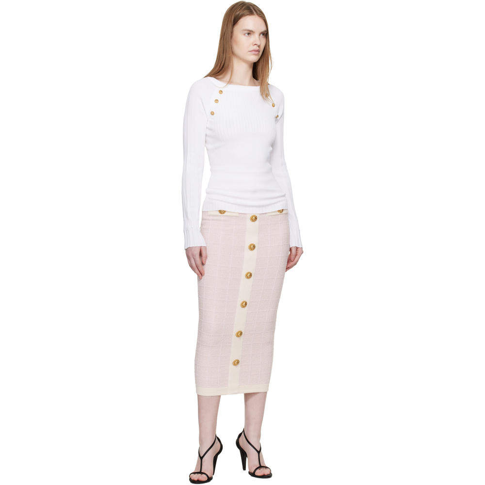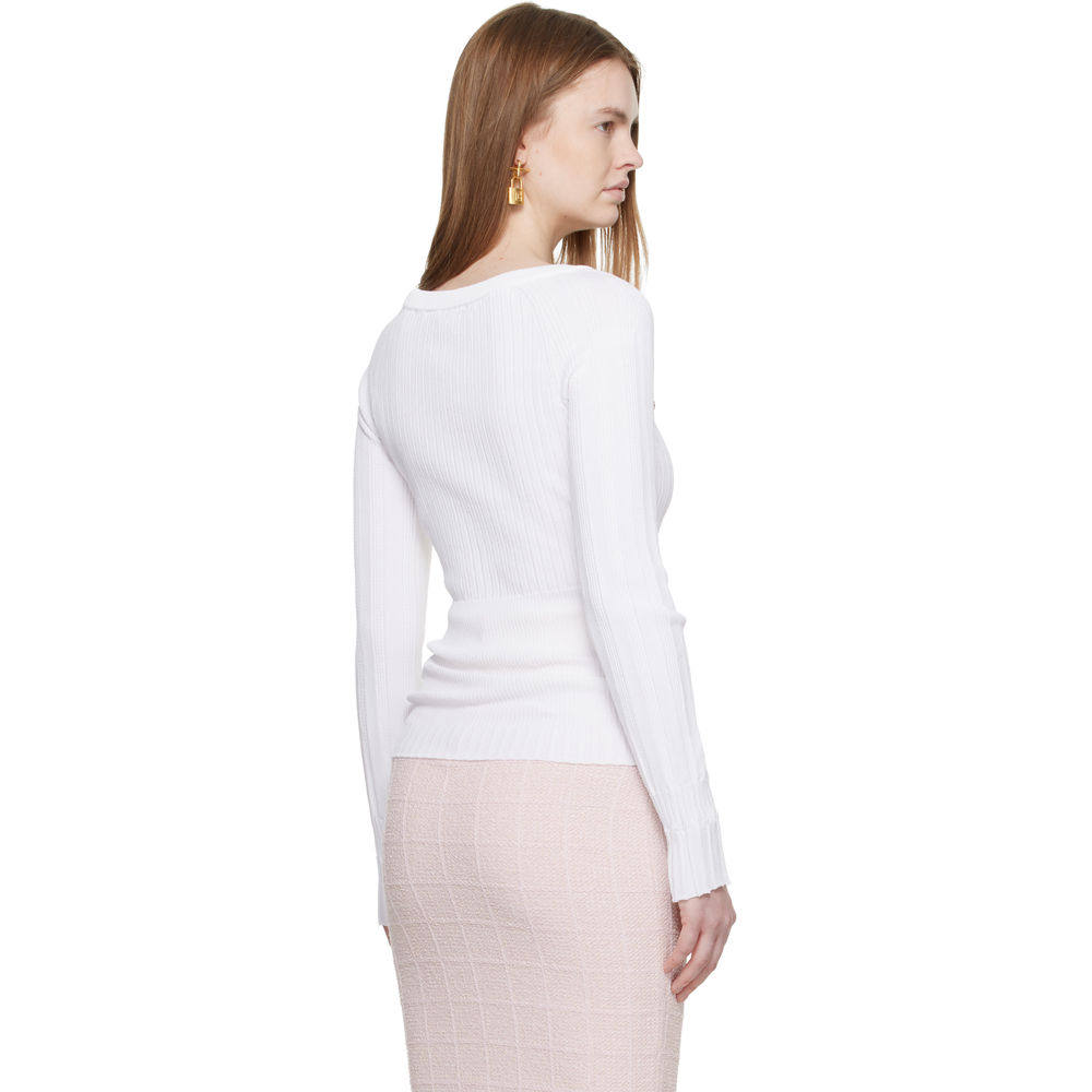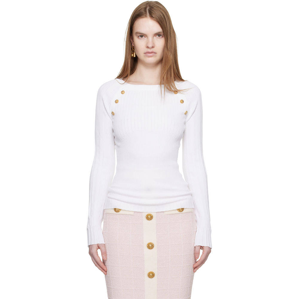📚 1h可退 潮奢 Balmain 巴尔曼 女士 白色 Knit Buttons 针织衫 GF1