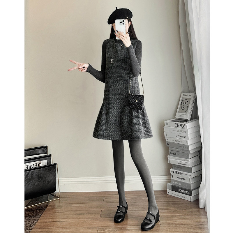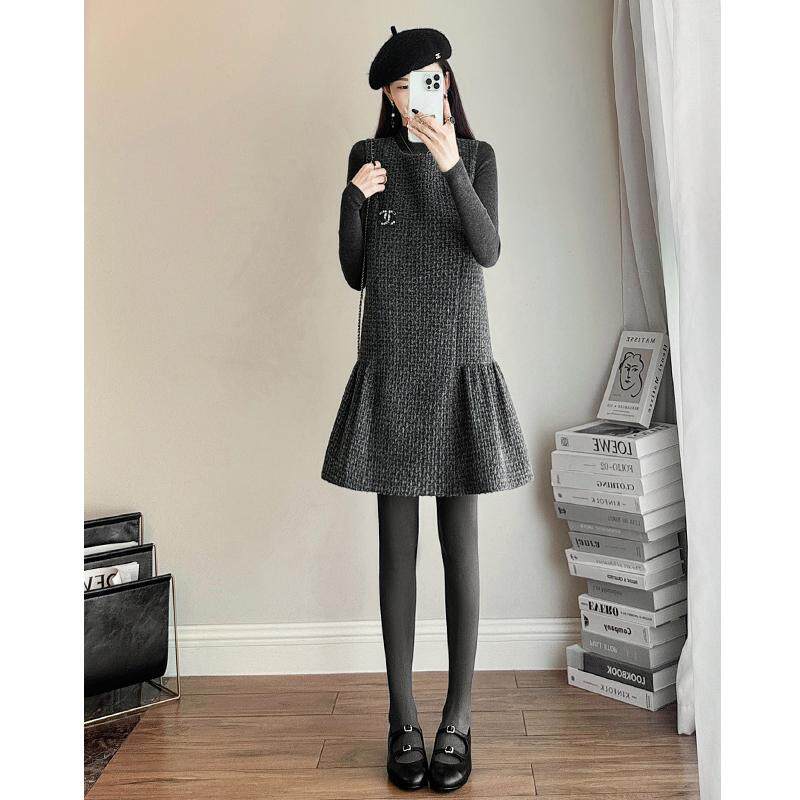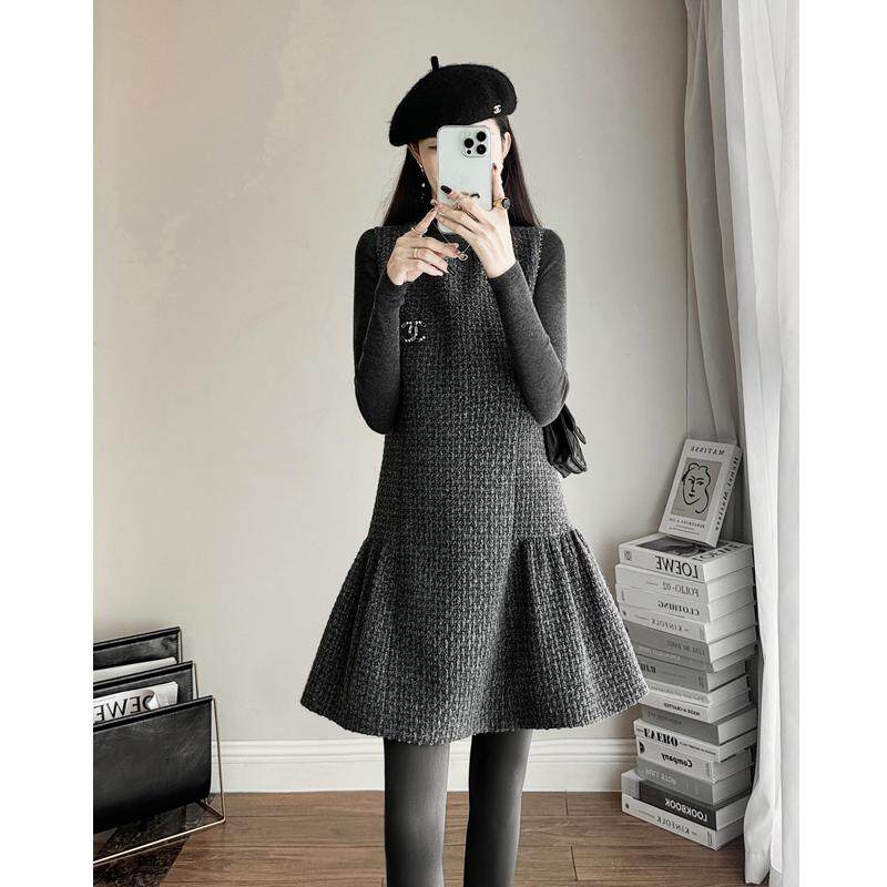 📚 爵莱菲大码高级感气质灰色羊毛背心裙冬季新款百搭无袖小香风洋装