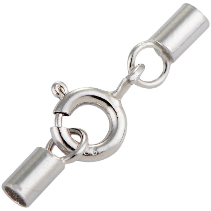 📚 925纯银编织红绳黑皮绳管扣头手链弹簧扣蜡皮绳连接扣diy配件材料