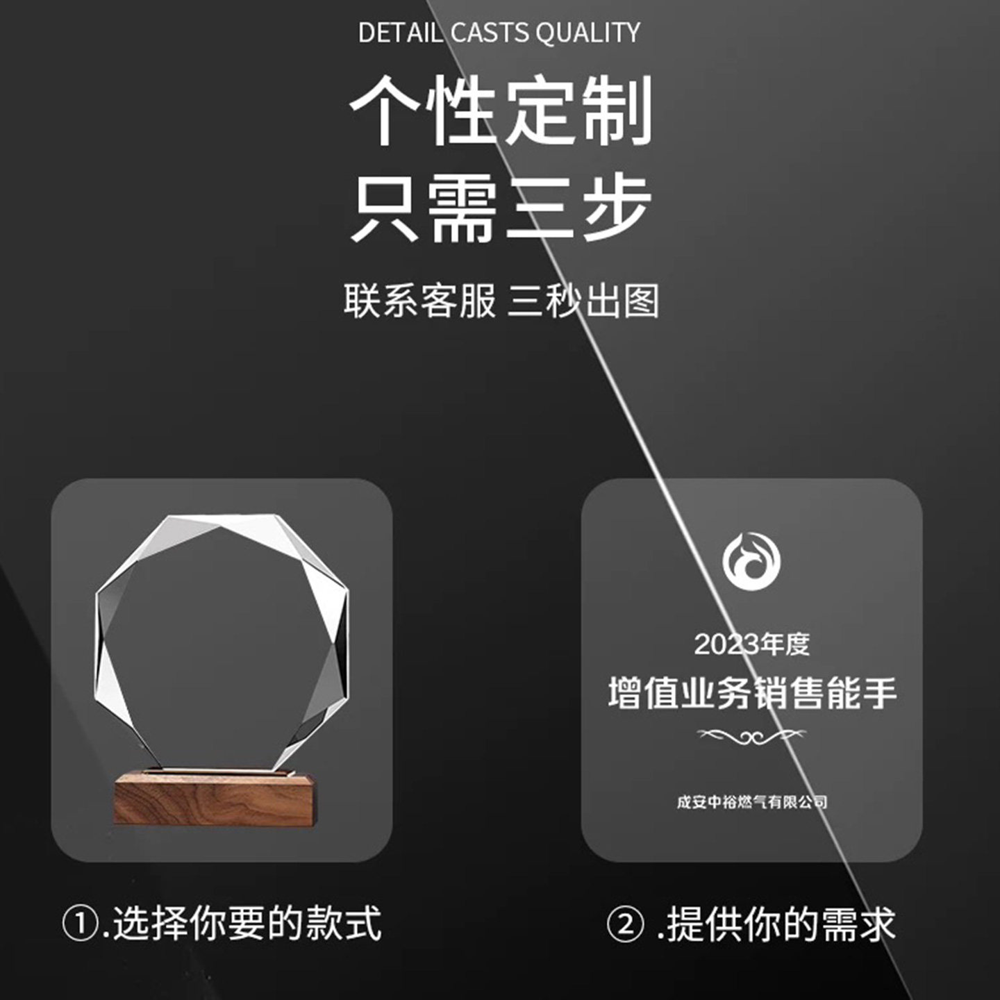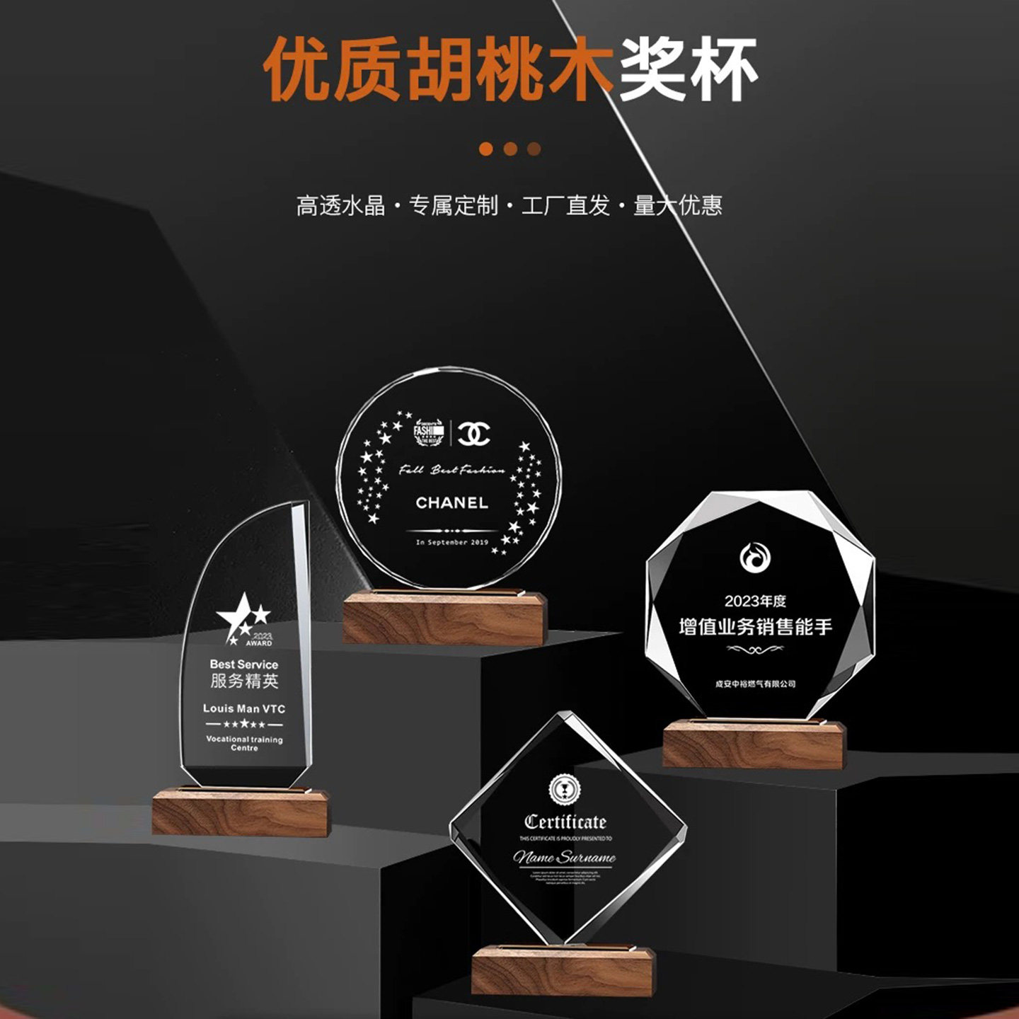 📚 湖北水晶奖杯定制免费彩印刻字创意透明奖章优秀员工荣誉冠军颁奖