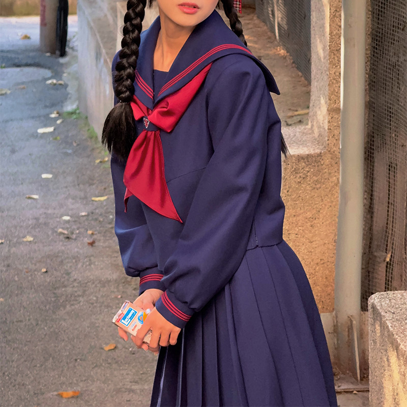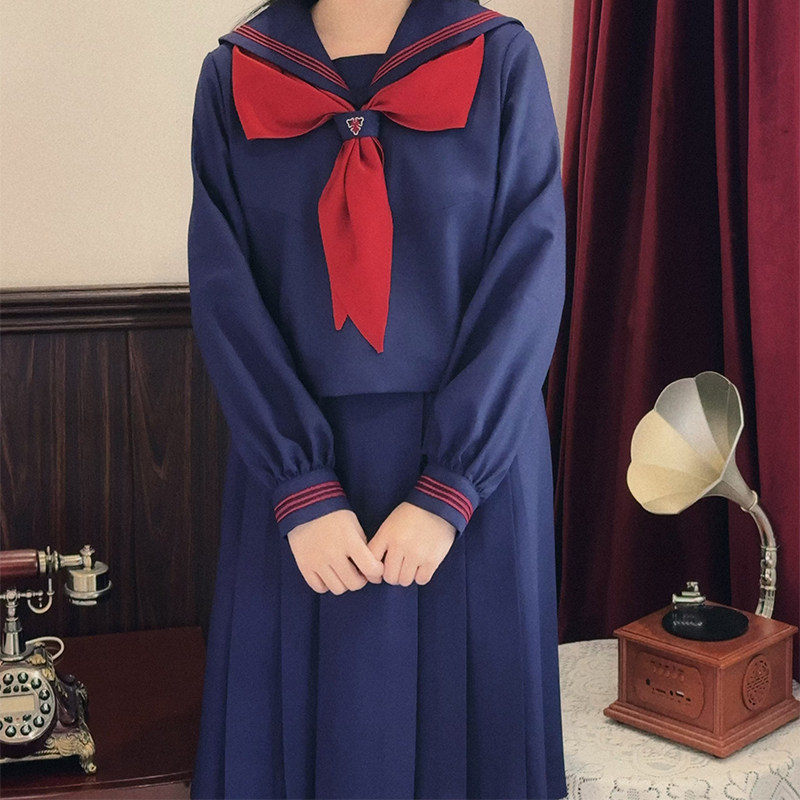 📚 中牌制服馆 顺聖学院 海鸥线浅绀色中间服环扣刺绣学院风水手服