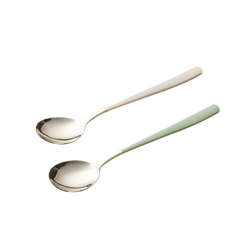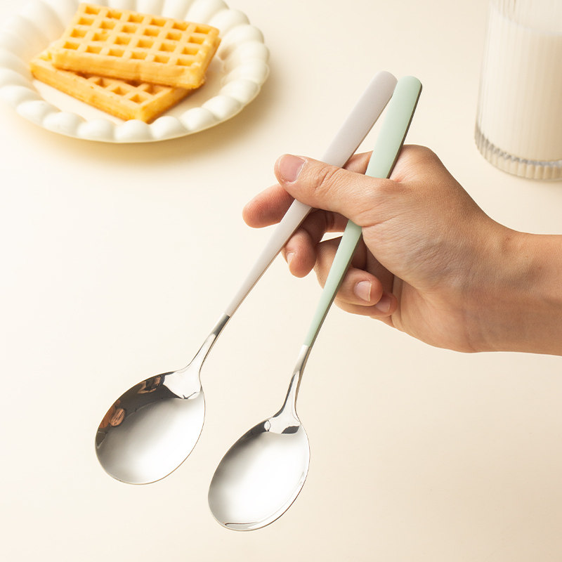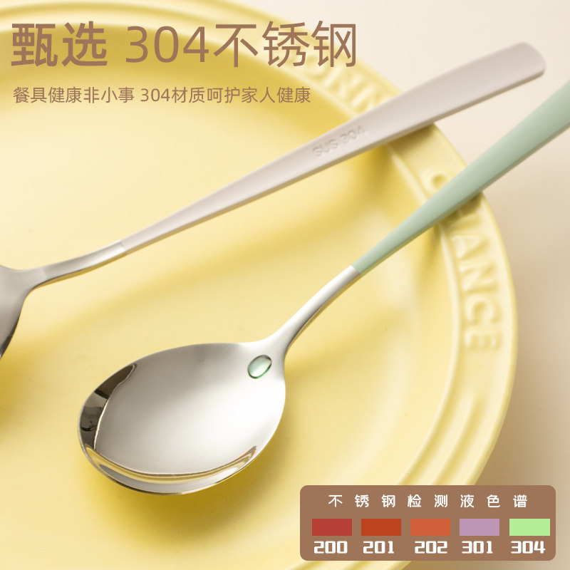 📚 炊师爷 304不锈钢勺子家用奶白色吃饭汤勺汤匙韩式小调羹西瓜勺