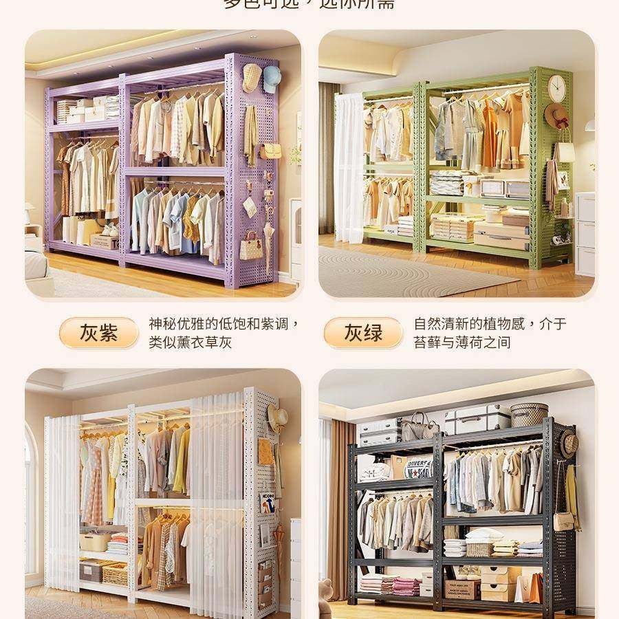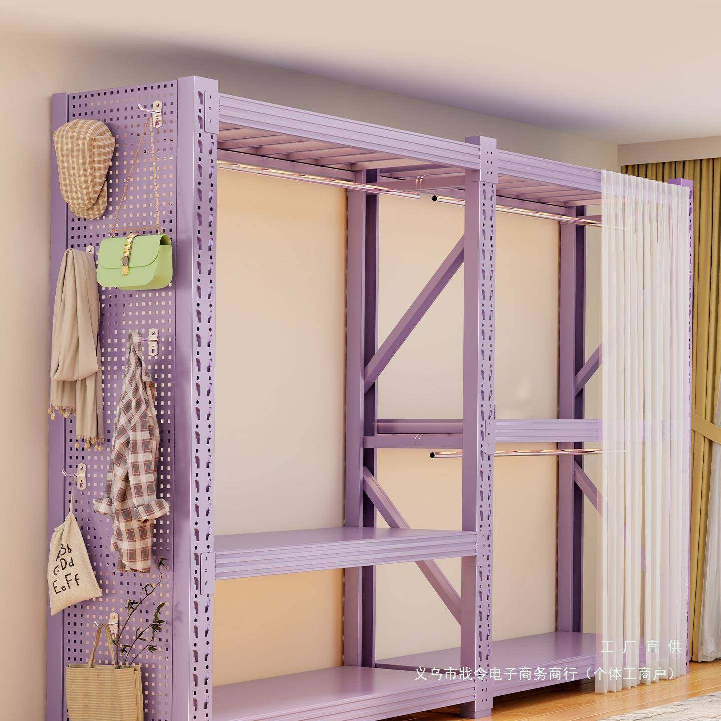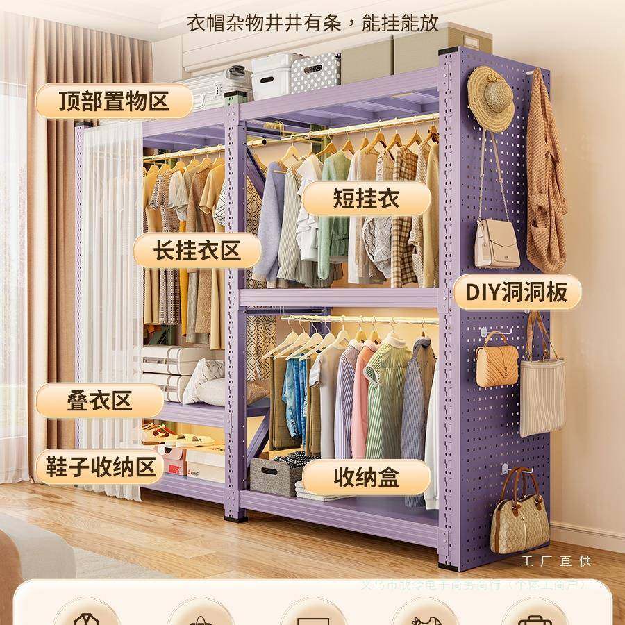 📚 859货架式家衣架用钢制收衣柜出租装屋简易组纳衣帽架开放式储物