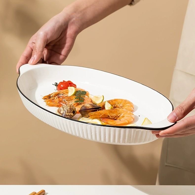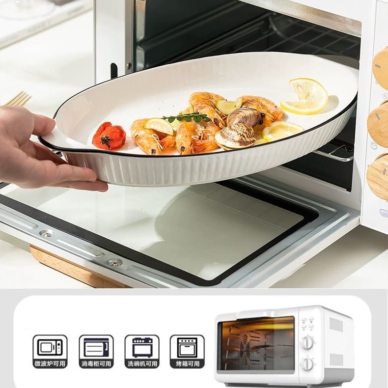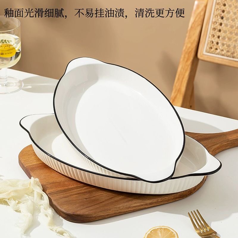 📚 2只装防烫双耳鱼盘子家用创意网红陶瓷 长方形鱼盘子菜盘清蒸鱼碟