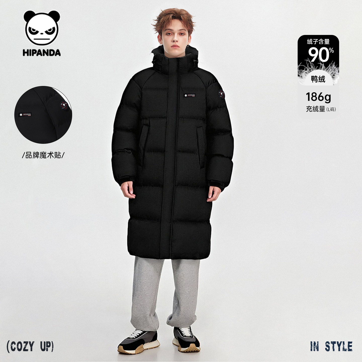 📚 Hipanda你好熊猫潮牌简约中长款保暖加厚连帽羽绒服男2025秋冬款