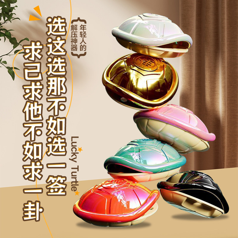 📚 龟龟卜好运龟壳趣味解压玩具金钱桌面摆件创意铜钱摇卦钥匙扣挂件