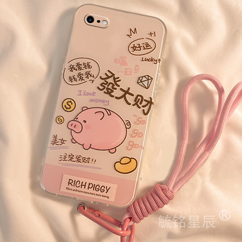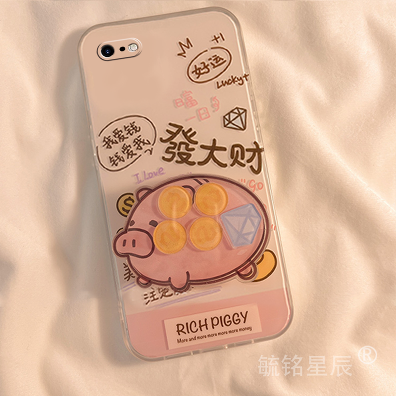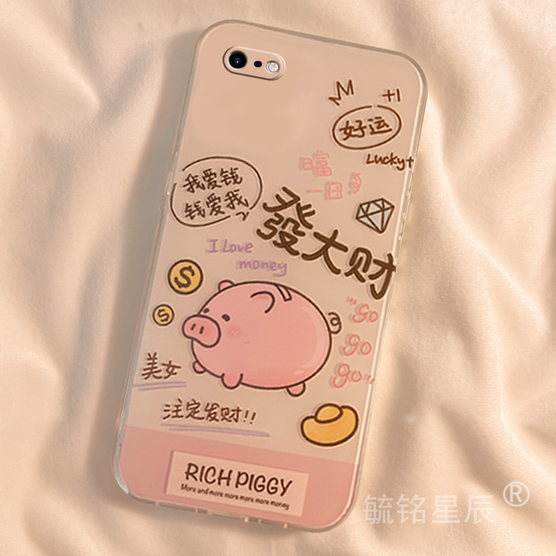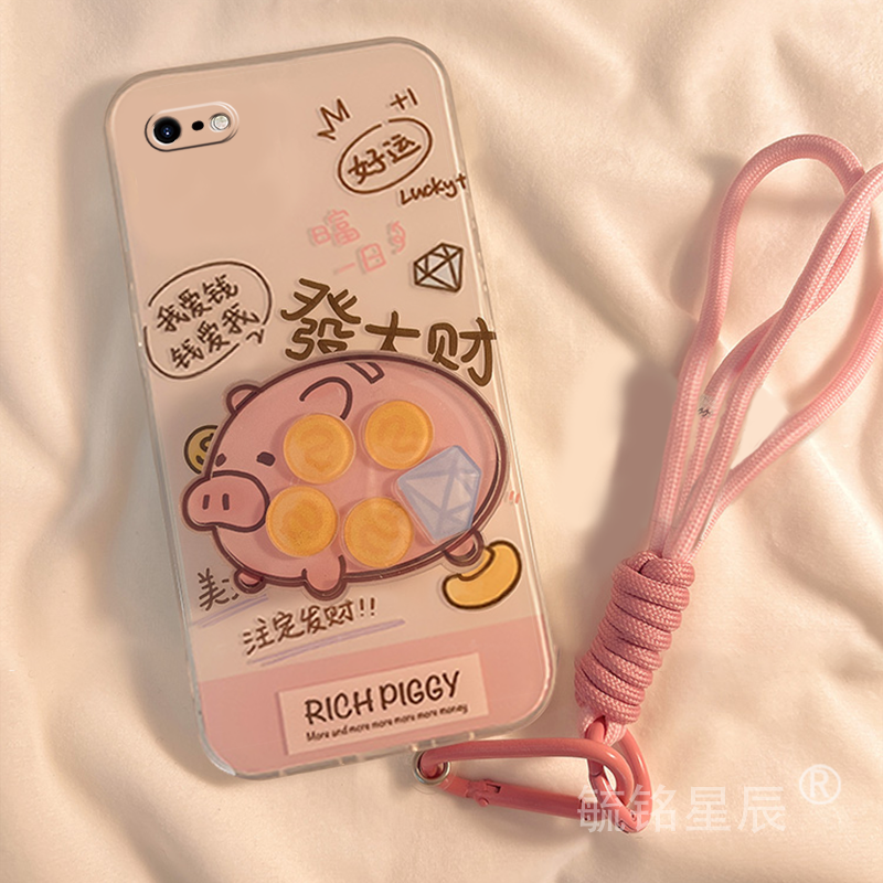 📚 新款粉色小猪适用苹果x手机壳iPhone8Plus透明的se3硅胶2软壳7带支架6挂绳5防摔xr腕带xsmax情侣s链条4八ix七