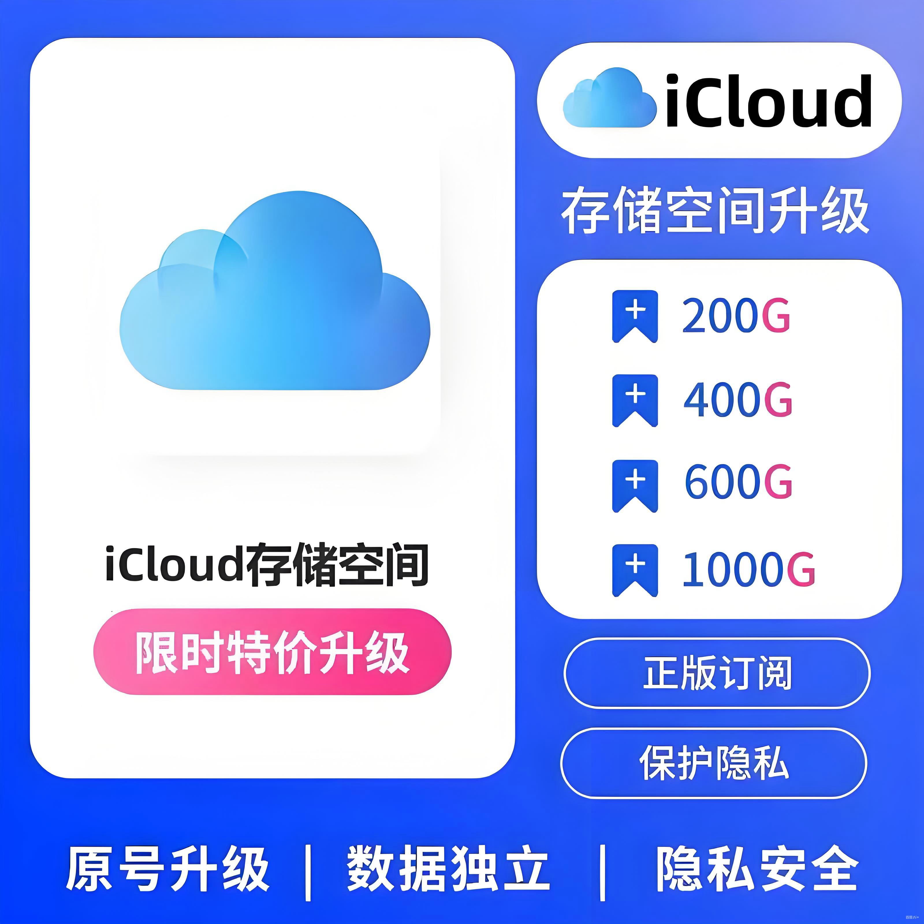 📚 iCloud储存空间升级 icloud扩容家庭共享拼车200G400G 1TB2TB一年