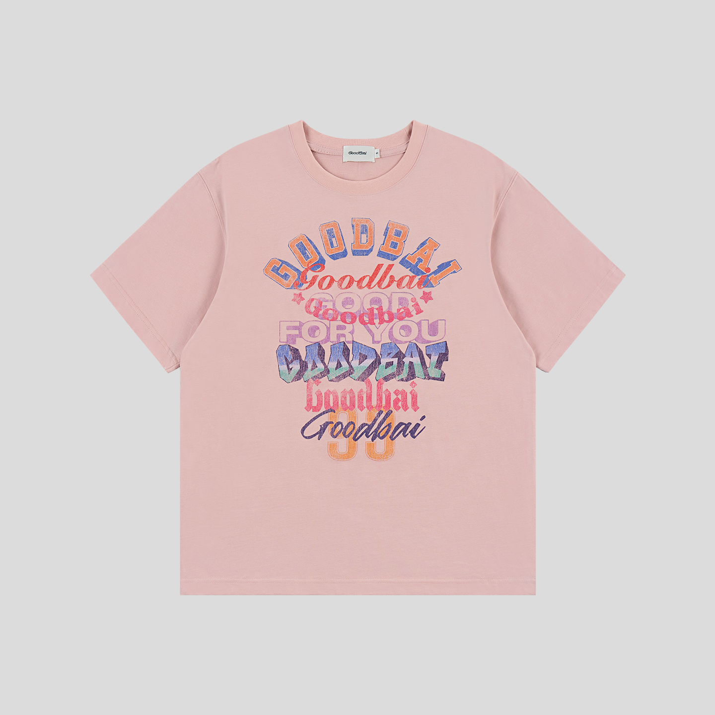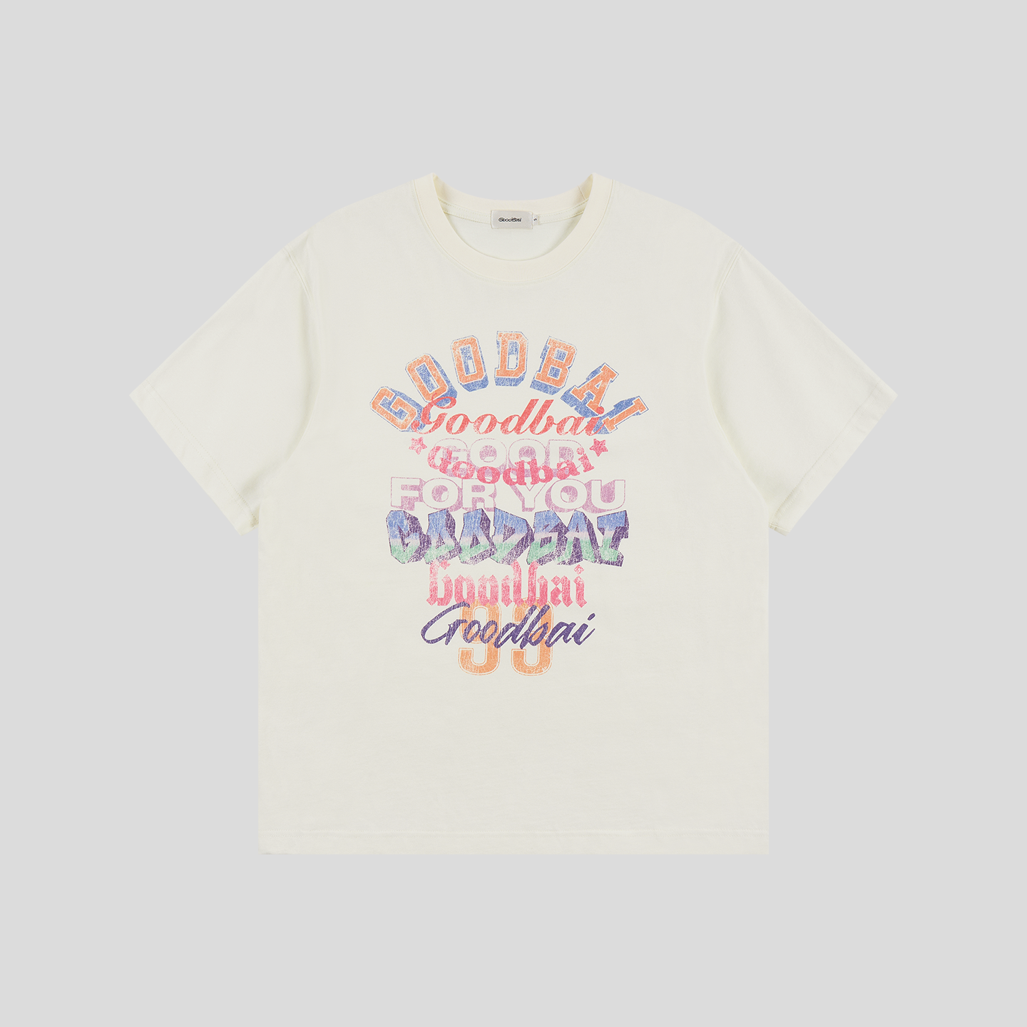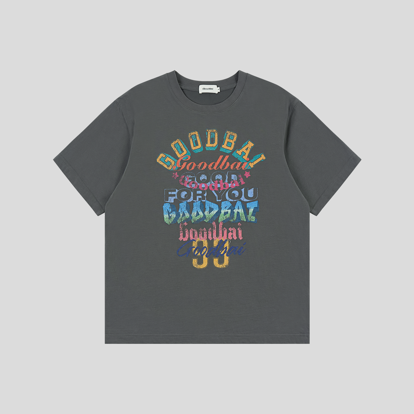 📚 GOODBAI 新款oversize彩色组合印花logo圆领宽松短袖T恤男女同款