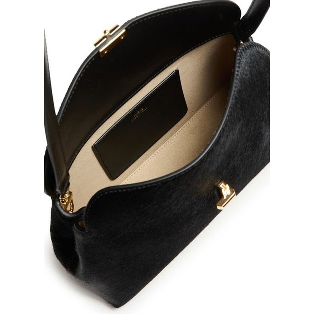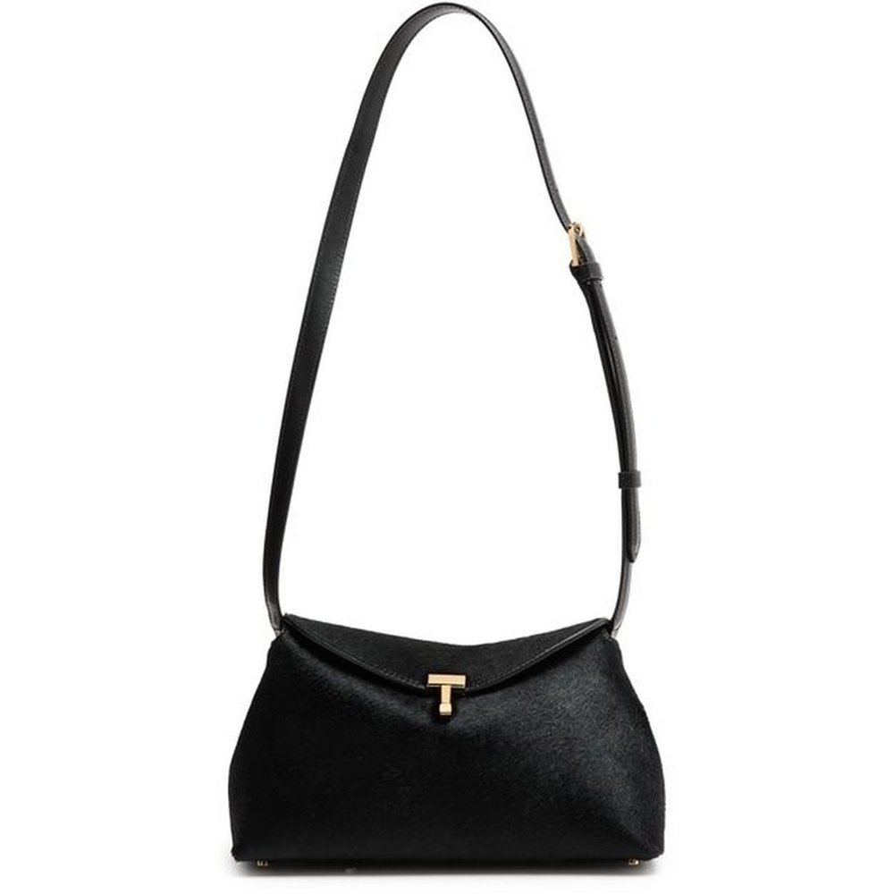 📚 自营欧洲直邮Toteme T-Lock女士黑色小牛皮T字锁扣单肩包斜挎包