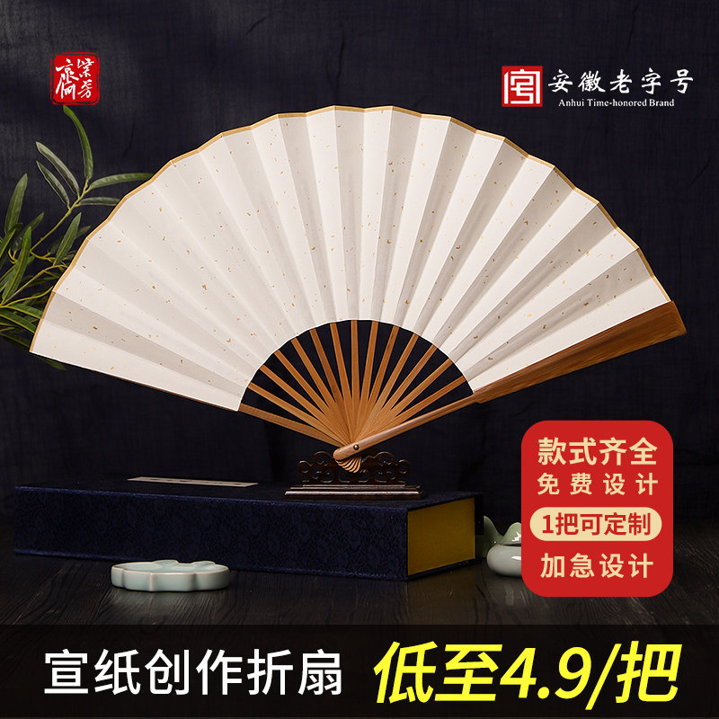 📚 中国风宣纸折扇空白扇子折叠随身携带题字书法纸扇男绘画扇面定制
