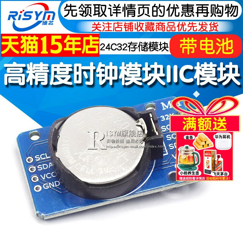 58¥ HU287 uXCfUExX2xF¥ https://m.tb.cn/h.iVPpWLR Risym DS3231 AT24C32 高精度时钟模块IIC模块 计时 存储模块 --------------------- 【原售价】15.4元 【现售价】15.4元。