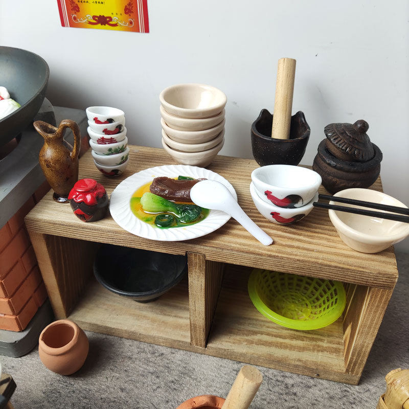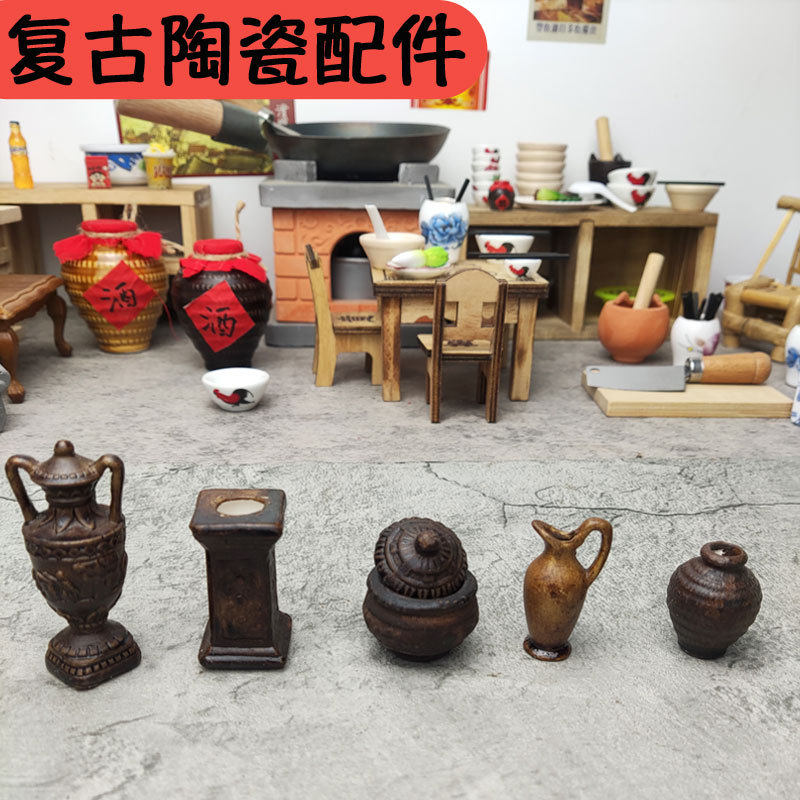 📚 网红迷你厨房过家家真煮食玩怀旧复古陶瓷罐小酒缸微缩食玩场景配