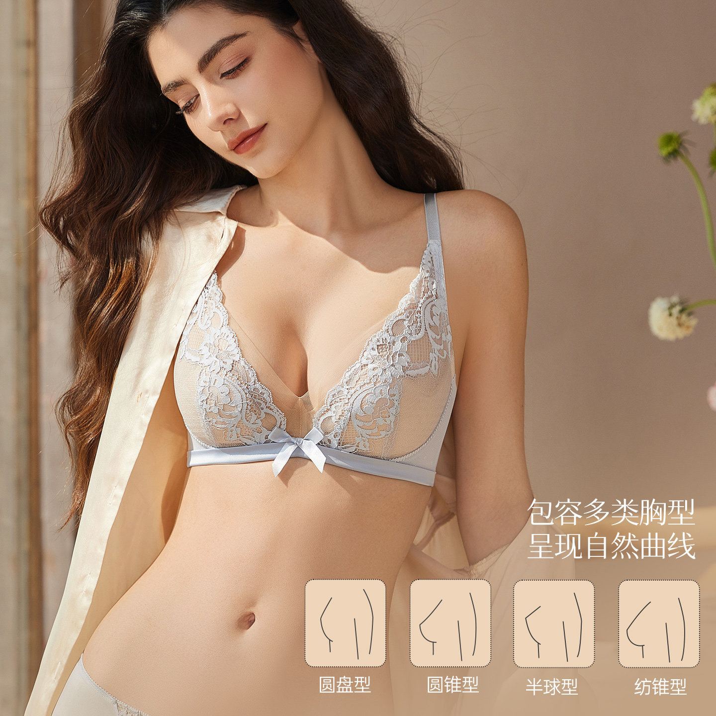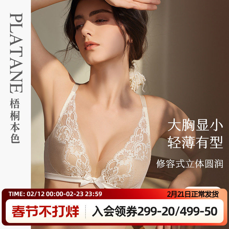 📚 梧桐本色内衣女大胸显小性感蕾丝聚拢上托文胸薄款BCD调整型胸罩