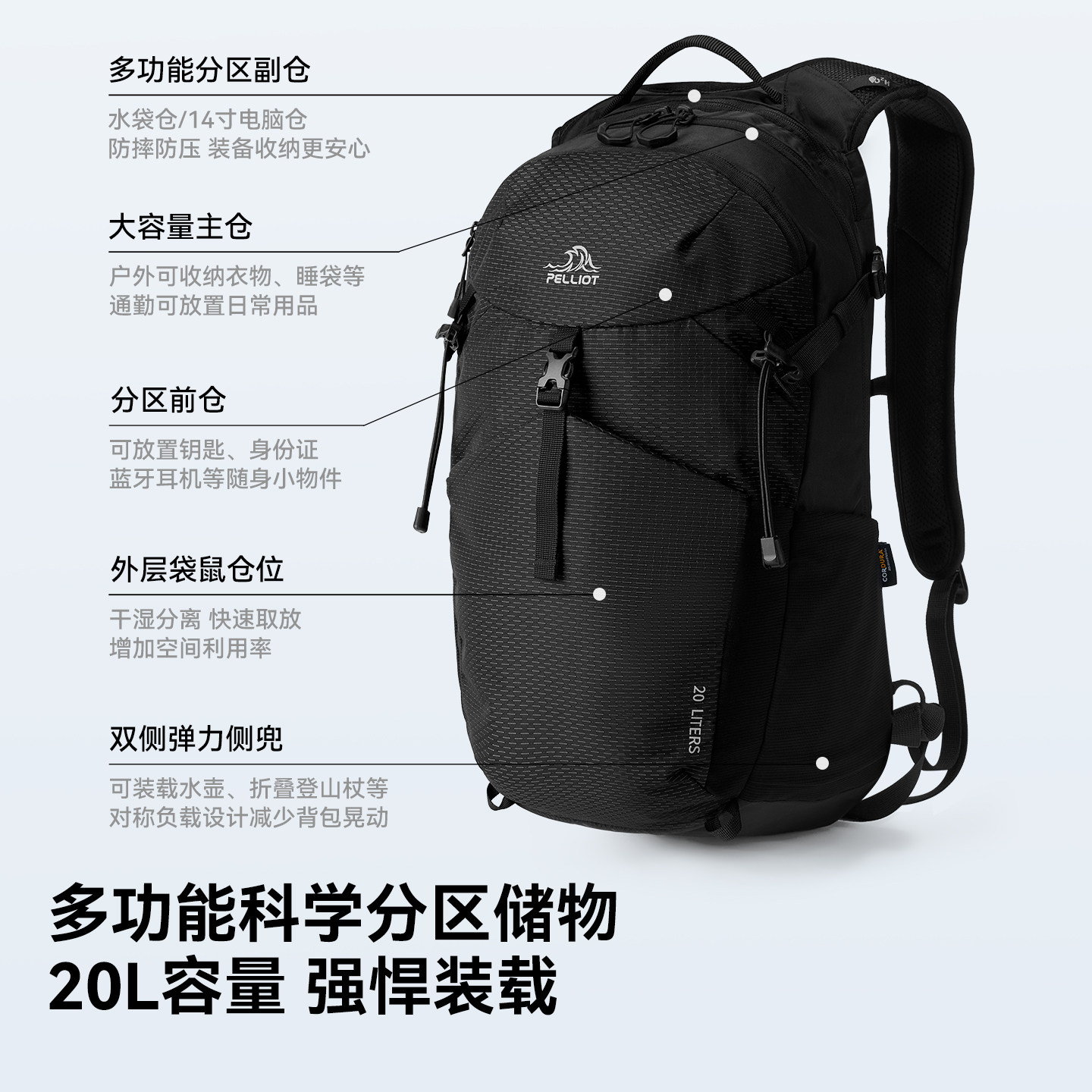 📚 【逐光PRO】伯希和户外登山包男20L大容量徒步背包轻量化双肩包女
