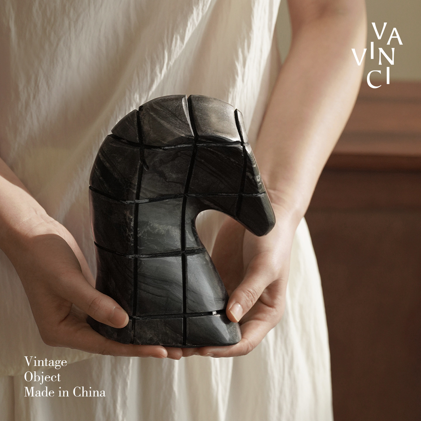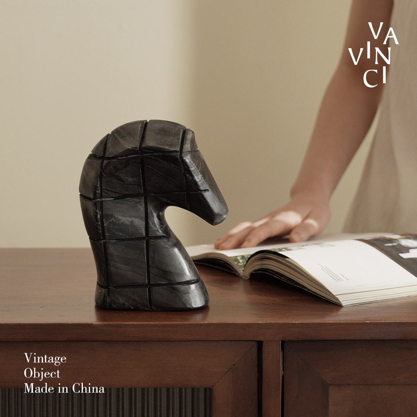 📚 梵其侘寂风黑色大理石抽象马头摆件样板间客厅书房酒柜桌面装饰品