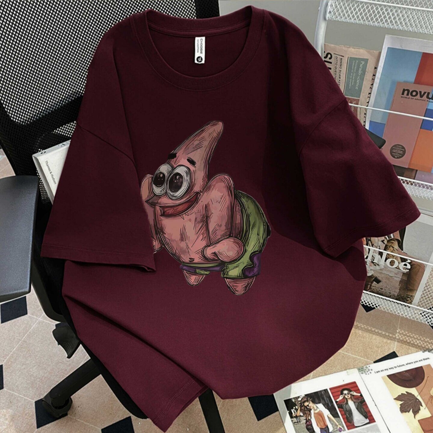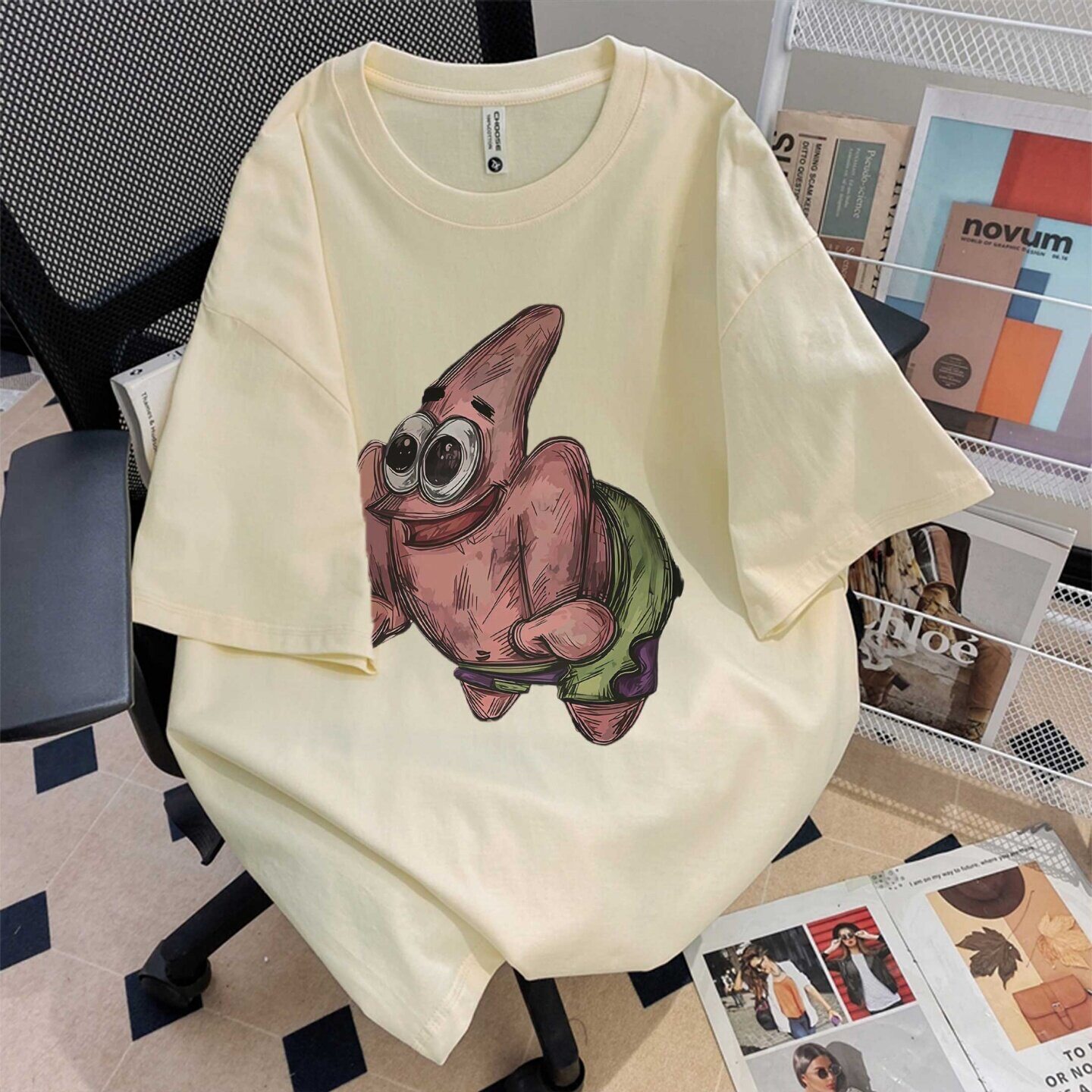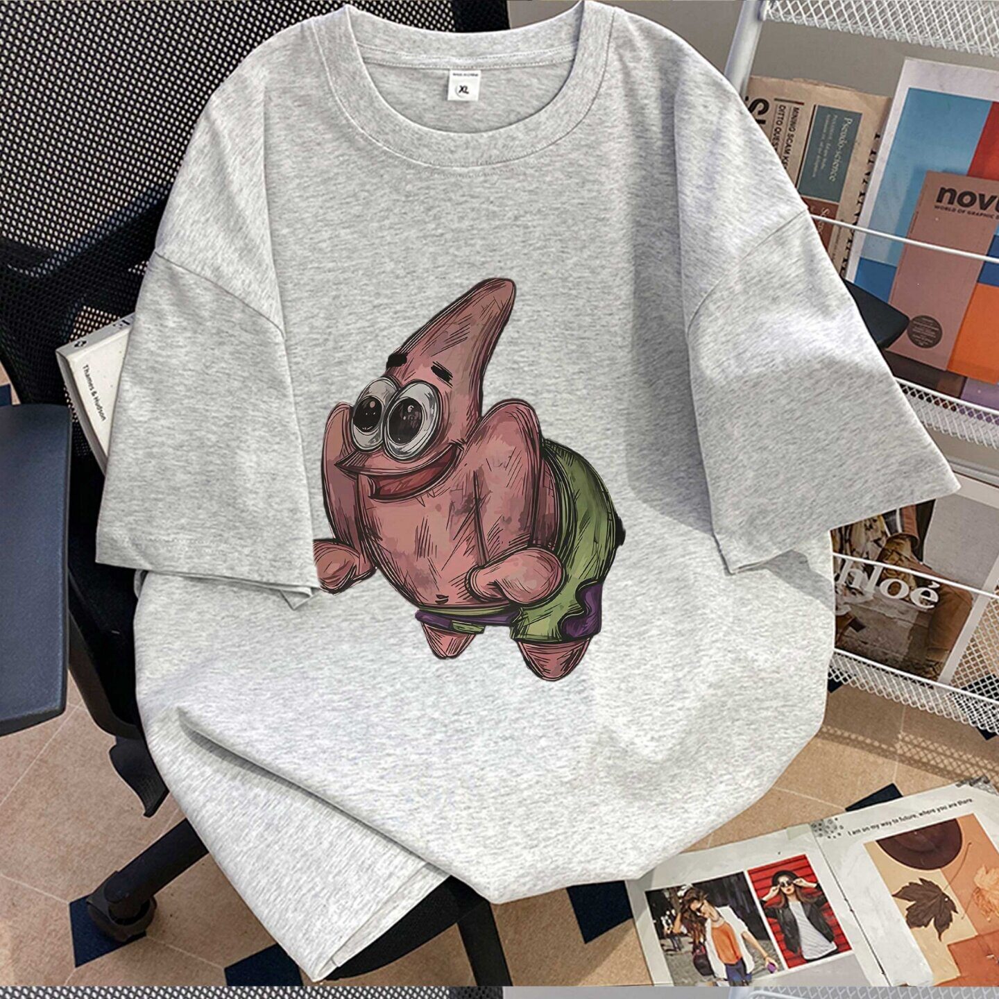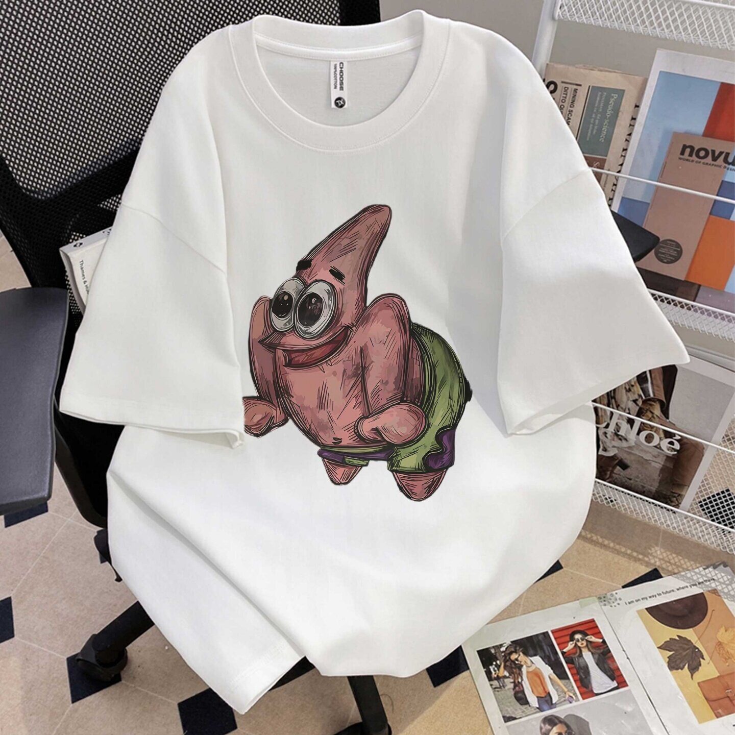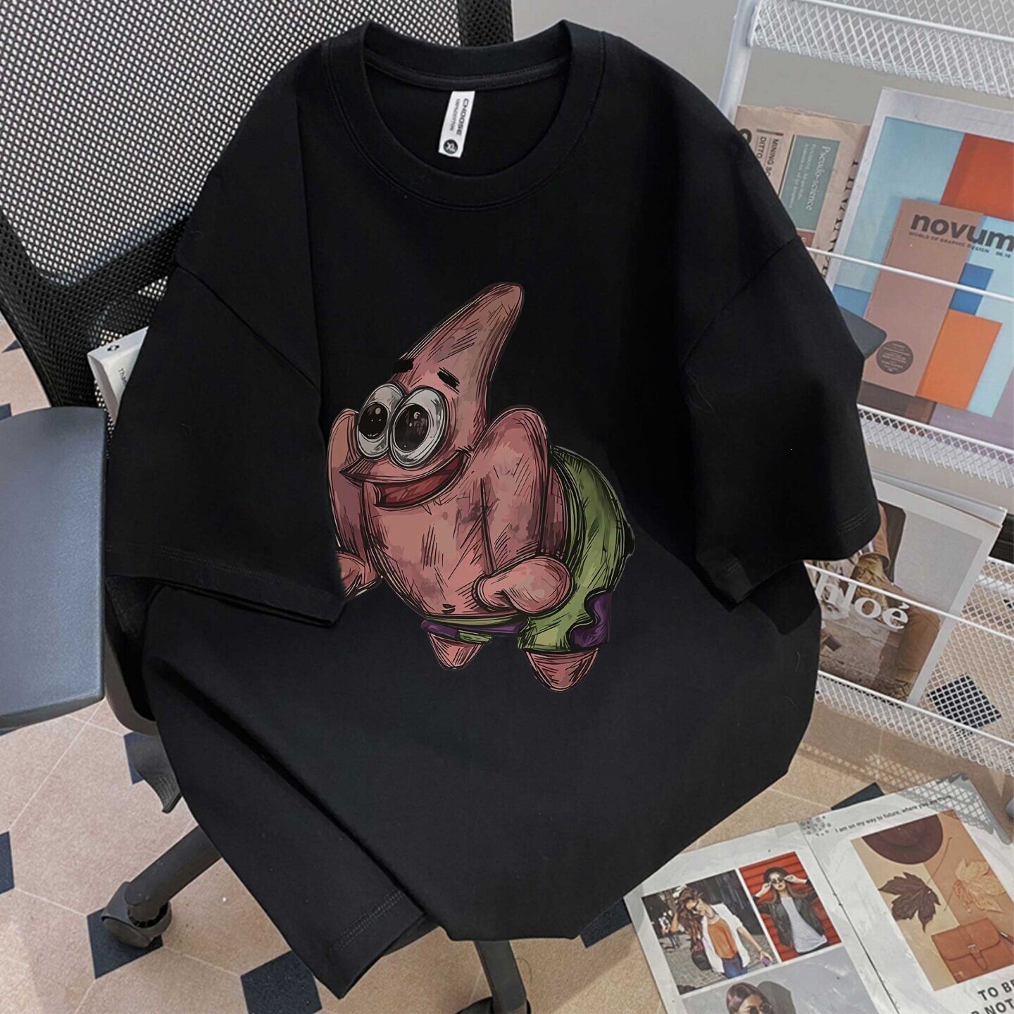 📚 新款嘻哈卡通可爱风派大星印花短袖T恤男款宽松潮流黑色上衣