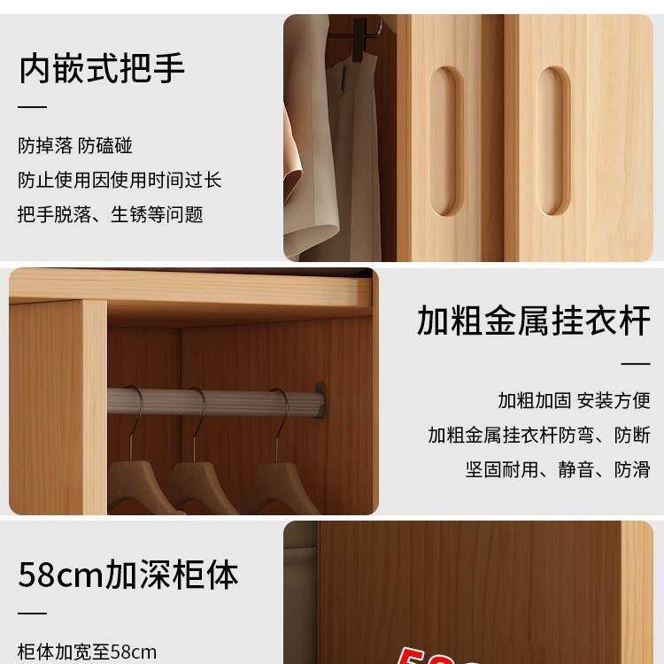 📚 木柜家用卧室推拉28510门儿实童松木木移门柜衣子原组装定制简易
