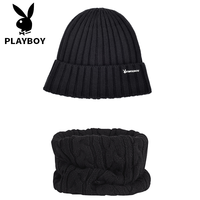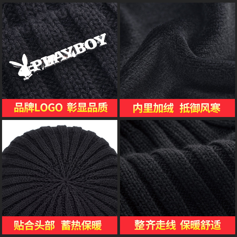📚 花花公子男士帽子秋冬毛线帽防寒保暖加厚针织帽时尚潮流棉帽脖套