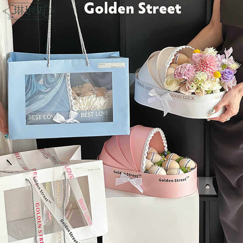 📚 创意摇篮花盒鲜花花束包装盒水果月子鸡蛋伴手礼盒空盒子花艺花篮