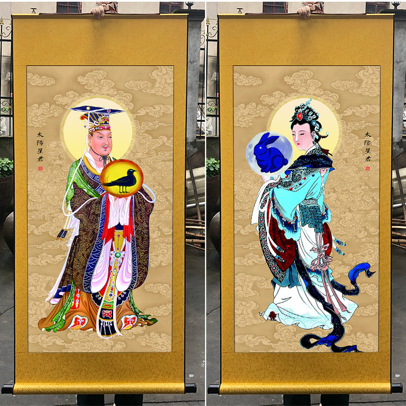 📚 五星七曜星君金木水火土太阴太阳真君供奉装饰神像卷轴挂画神仙画
