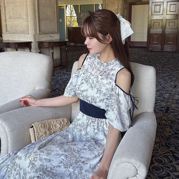 📚 日本GRL官网代购包邮日系女装新品露肩蝴蝶结花卉喇叭裙[pm586]