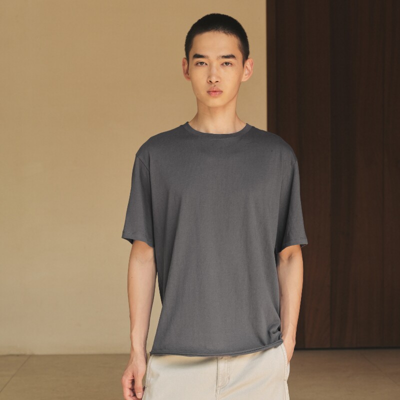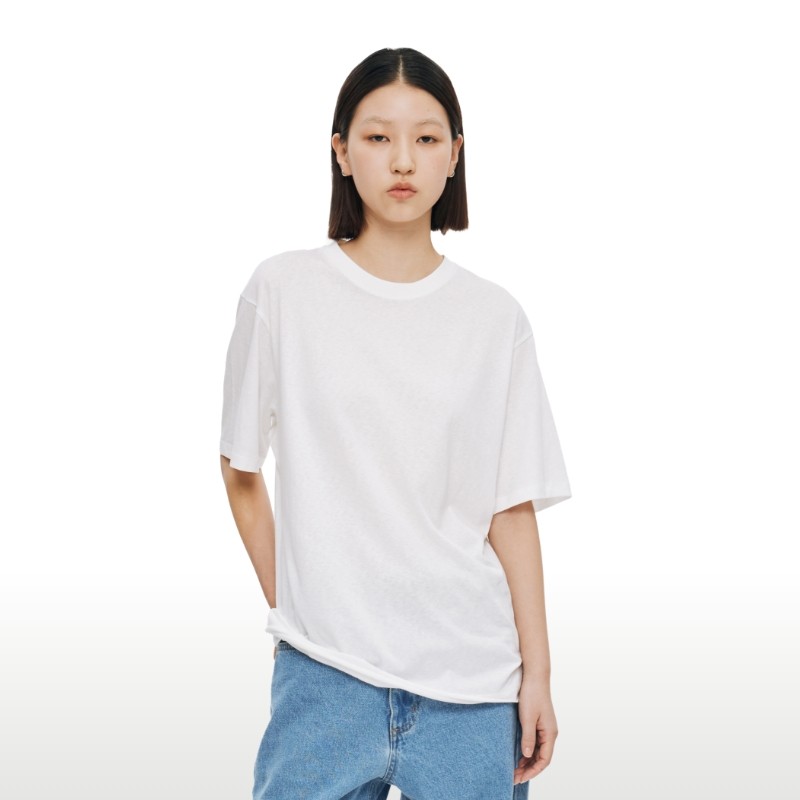 📚 WassupHouse卷边云朵纱短袖白色t恤轻薄透气纯色情侣宽松休闲上衣