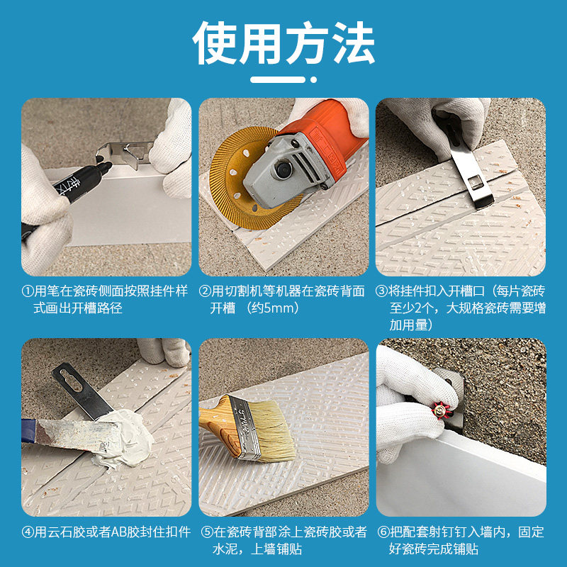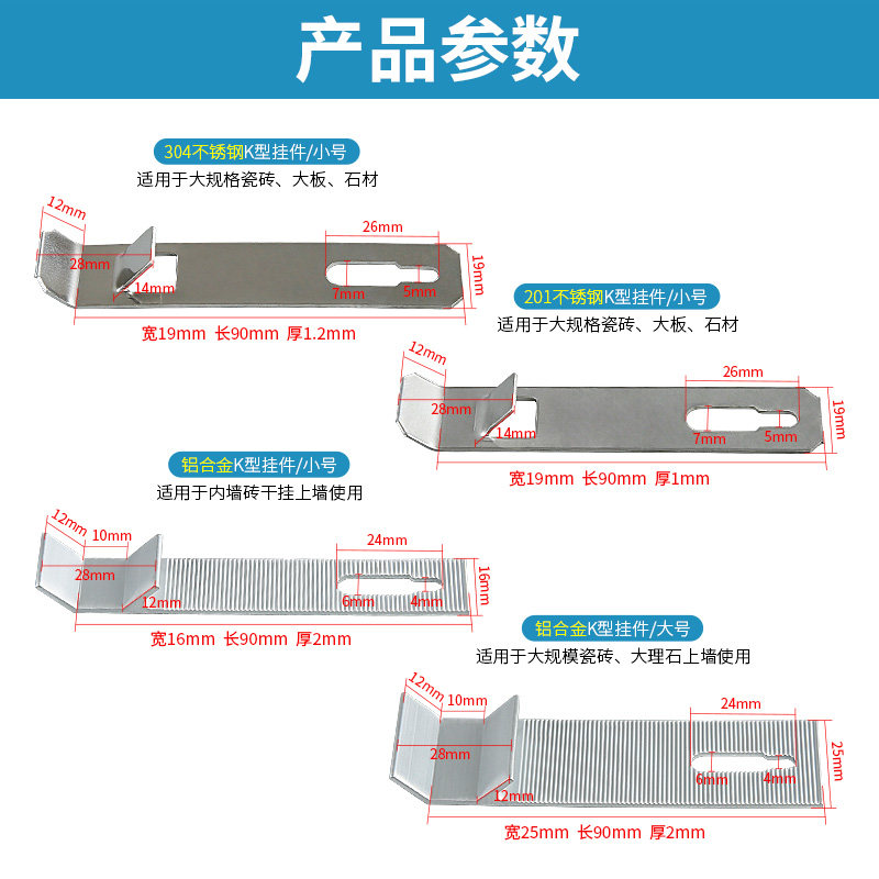 📚 瓷砖挂墙干挂件不锈钢挂钩K形新型扣件铝合金内墙砖固定卡扣配件