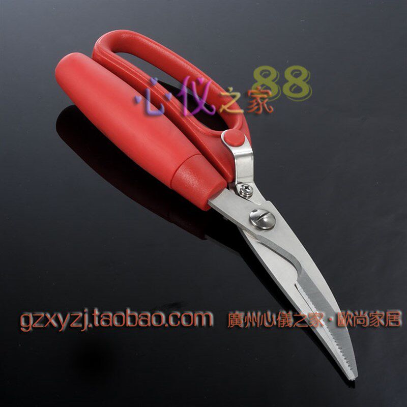 📚 特惠不锈钢弹力自开带锁厨房剪刀防滑胶柄锋利厨剪鸡骨剪鱼鳍熟食